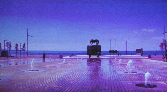 Δεν το είχα πάρει είδηση και μπήκα στο Μπέη Χαμάμ τυχαία την περασμένη εβδομάδα, εν αναμονή για έναν καφέ στο διπλανό καφέ των Λουτρών «Παράδεισος». Με μια πρώτη ματιά, αυτό που με εντυπωσίασε ήταν ζωντανό άλογο που, στη θέση του Βουκεφάλα και χωρίς τον Μεγαλέξανδρο της Νέας Παραλίας, έτρωγε και κουνούσε την ουρά του διαρκώς, σε μια μεγάλη οθόνη. «Το φενγκ – σούι σε όλο του το μεγαλείο», σκέφτηκα, καθώς παρατηρούσα παιδάκια να παίζουν στα μίνι συντριβάνια και τα νερά να τρέχουν.