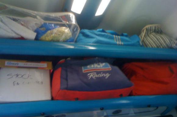 Ο ρομ άντρας με το αγοράκι κάθισαν απέναντί μου. Εκείνος, με καρό βερμούδα και γαλάζιο πουκάμισο ― μόνο ένα κουμπί από τα 8 κουμπωμένο, κι αυτό απειλούσε να το κόψει ένα σώμα που ξεχείλιζε από παντού (αργότερα κούμπωσε ένα-δυο ακόμα κουμπιά). Άφησε στο πάτωμα μια μεγάλη διαφανή τσάντα (μάλλον από συσκευασία κουβέρτας), με ρούχα μέσα φύρδην-μίγδην• και μπροστά στα πόδια του δύο σακούλες, η μία από σουπερμάρκετ και η άλλη διαφανής, με μισοφαγωμένα σάντουιτς και άλλα τρόφιμα, χύμα κομμάτια από γύρο κτλ.