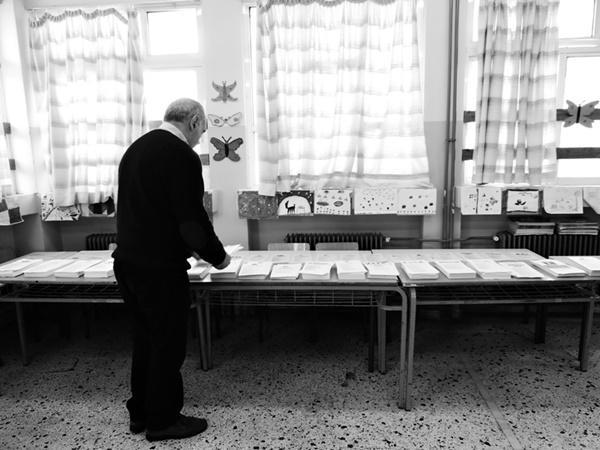 Κάποιοι ψάχνονταν για το εάν ψήφιζαν ή όχι στο συγκεκριμένο σχολείο, κάποιοι είχαν πιάσει ψιλή κουβέντα στον αυλόγυρο, σε κάποια εκλογικά τμήματα είχε ψιλο-ουρά, στα περισσότερα όμως, όχι. Ήταν τόσο ήρεμα τα πράγματα γύρω στις 12.30 το μεσημέρι, που αναρωτήθηκα εάν οι κάλπες θα γέμιζαν μέχρι το απόγευμα. Αν θυμάμαι καλά, ένας από τους εκλογικούς αντιπροσώπους μου ανέφερε ότι μέχρι τότε είχαν περάσει μόνο 700 άτομα περίπου. Ψήφισα μεταξύ δύο – δεν μου αρέσει που έχει τόσο “πρασινίσει” ο ΣΥΡΙΖΑ εδώ και μήνες. Βγαίνοντας, τράβηξα μερικές φωτογραφίες. Σε ασπρόμαυρο κυρίως μη… χρωματίσω τον κόσμο που ψήφιζε…