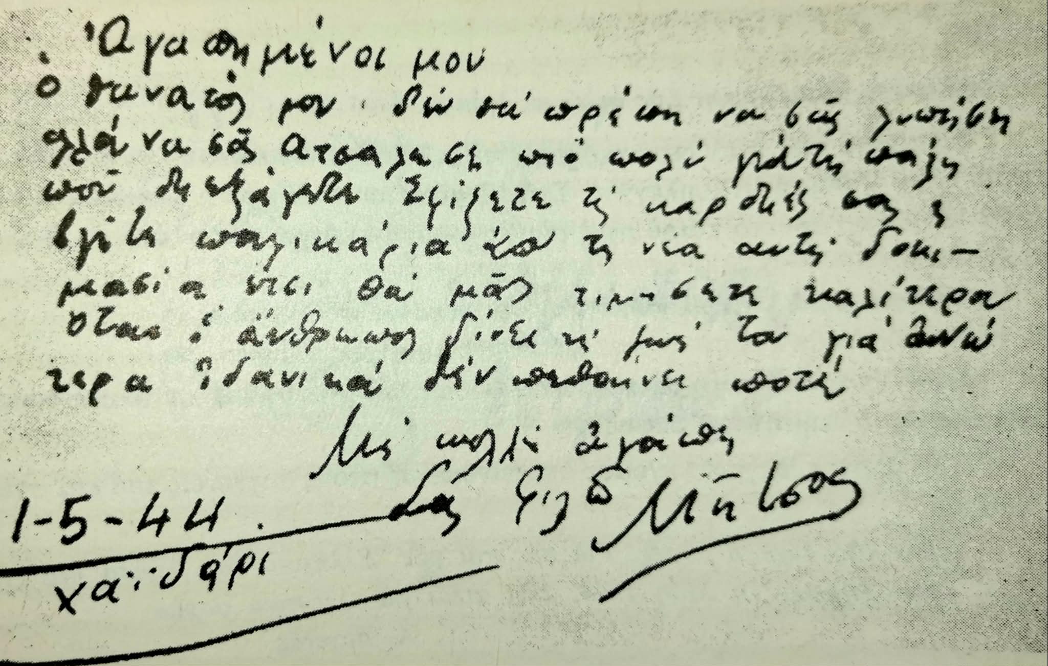 Μέ πολλήν ἀγάπη Μήτσος»