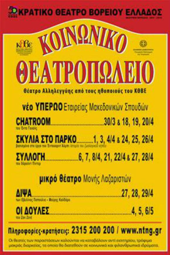Πρόκειται για το αποκορύφωμα των μέχρι τώρα προσπαθειών του ΚΘΒΕ να αποκτήσει ξανά το θέατρο κοινωνικό πρόσωπο και να διεκδικήσει τη θέση που του αρμόζει ως φορέας ψυχαγωγίας, παιδείας, πολιτισμού και δημοκρατίας. Η ιδέα του καλλιτεχνικού διευθυντή, κ. Σωτήρη Χατζάκη, να δημιουργηθεί το «Κοινωνικό Θεατροπωλείο» αποτελεί «μια παρηγορητική φωνή για το συνάνθρωπό που δοκιμάζεται», όπως αναφέρεται και στο σχετικό σημείωμά του. «Εμείς οι ηθοποιοί του ΚΘΒΕ ενώνουμε τις δυνάμεις μας με το τεχνικό και διοικητικό μας προσωπικό και προτείνουμε την τέχνη ως αξιακή βάση οικοδόμησης ενός νέου εθνικού αφηγήματος», σημειώνει επίσης. Πρακτικά, αυτή η πρωτοβουλία δίνει σε καθέναν από εμάς την ευκαιρία να παρακολουθήσει στο νέο Υπερώο της ΕΜΣ και στο μικρό θέατρο της Μονής Λαζαριστών πέντε παραστάσεις από τις 30/3/2012 ως τις 6/5/2012, επιλογή των συντελεστών που συμμετέχουν σ΄αυτές (με την επιθυμία να συνεχιστεί και του χρόνου) αφήνοντας ως αντίτιμο εισιτηρίου όχι χρήματα αλλά τρόφιμα μακράς διαρκείας, τα οποία θα διατεθούν σε κοινωνικά ιδρύματα. ( «Το Χαμόγελο του παιδιού», «Ελληνικό Παιδικό Χωριό», Ίδρυμα Ορφανοτροφείο Θηλέων «Η Μέλισσα», Παπάφειο Ίδρυμα & Ξενώνας Προστασίας Άγαμων Μητέρων «Το Σπίτι της Μαρίας»).