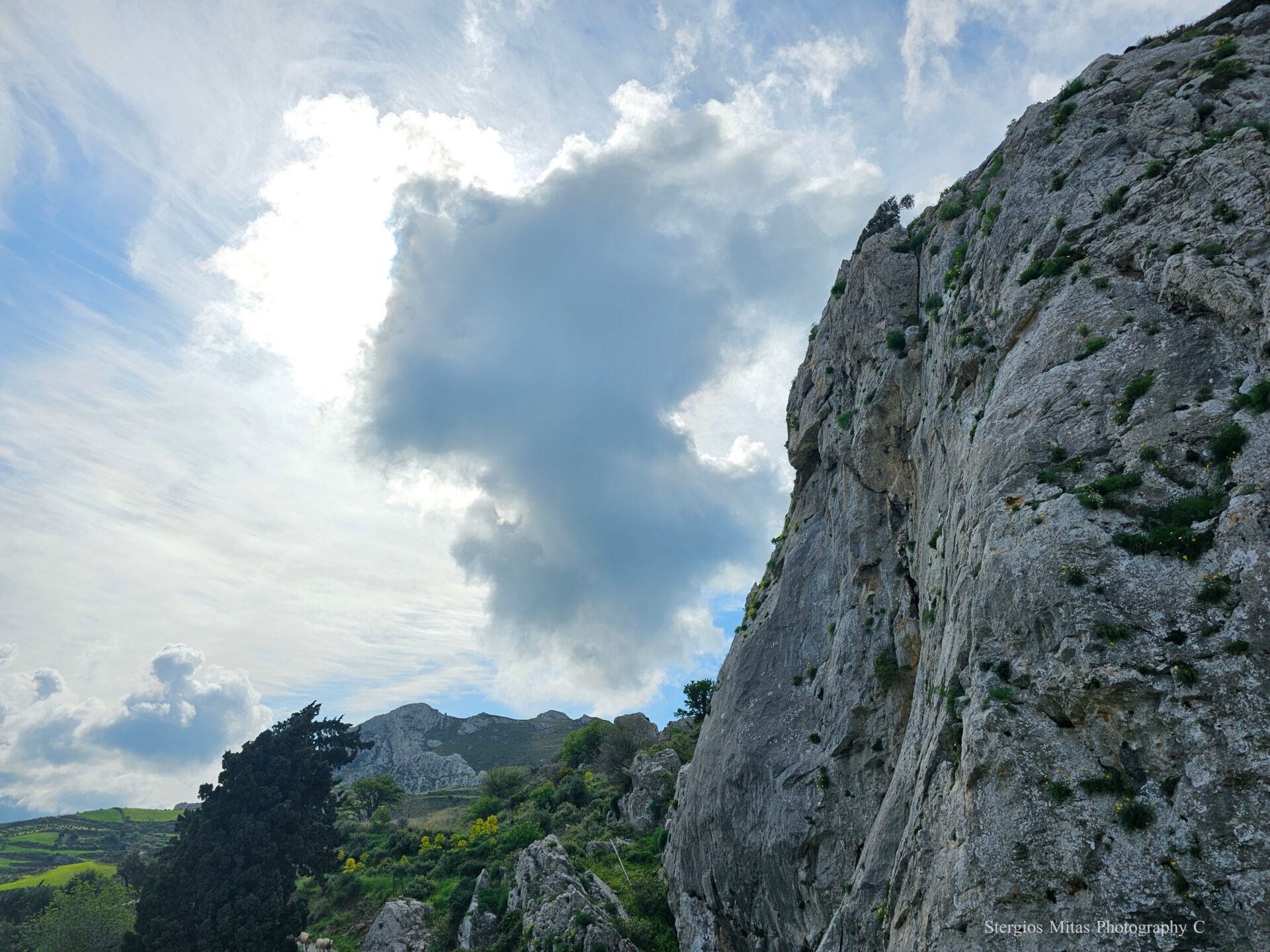 Καθίσαμε υπομονετικά και ήρεμα στην άκρη του γκρεμού στο όρος Γιούχτας γιατί ήξερα ότι εδώ έχουν καταφύγιο οι γύπες. Το βουνό από την μία του πλευρά είναι απροσπέλαστο με απότομους γκρεμούς που προσφέρουν προστασία στους γύπες. Περιμέναμε και είδαμε δύο να κάνουν βόλτες και να γυρίζουν πάνω από το βουνό. Είναι ένα μεγάλο επιβλητικό πουλί με άνοιγμα φτερών κοντά στα τρία μέτρα, που κινείται κάνοντας κύκλους πάνω σε θερμά ανοδικά ρεύματα αέρα. Έτσι μπορούν και κάνουν πτήσεις μεγάλης διάρκειας για να βρουν τροφή.