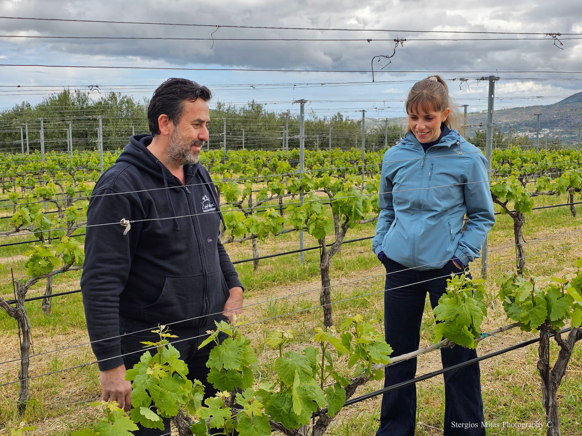 Ο Νίκος Δουλουφάκης είναι οινοποιός τρίτης γενιάς και μεγάλωσε μέσα στα αμπέλια. Από μικρός έμπαινε στα πατητήρια και πατούσε σταφύλια, εκπληκτική εμπειρία για ένα παιδί. Σπούδασε στην Ιταλία αμπελουργία και οινοποιεία. Τα αμπέλια του είναι γύρω από την περιοχή των Δαφνών σε τέσσερεις πανέμορφες λοφοσειρές σε ένα υψόμετρο από 200 έως 550 μέτρα. Το μέρος είναι τόσο όμορφο που δεν θέλαμε να φύγουμε από εδώ πάνω με την Αρετή. Το Κρητικό πέλαγος με το αεράκι του δροσίζει τα αμπέλια και το ασβεστολιθικό έδαφος κρατάει την υγρασία για να ξεδιψάνε. Η καλλιέργεια τους είναι πλήρως βιολογική. Κάποτε η φυλλοξήρα τούς κατέστρεψε σχεδόν όλα τα αμπέλια. Ο Νίκος από το 1991 που ανέλαβε το οινοποιείο φυτεύει αμπέλια κάθε χρόνο. Φέτος μας είπε ότι έχει να φυτέψει 5.000 αμπέλια. Το 1996 ήταν από τους πρώτους που εμφιάλωσε ποιοτικό κρασί στην Κρήτη. Σήμερα έχει 16 ετικέτες κρασιών με επίκεντρο στην ποικιλία Λιάτικο στα κόκκινα κρασιά και Βιδιανό στα λευκά κρασιά. Φτιάχνει επίσης και ένα θαυμάσιο αφρώδες κρασί από την ποικιλία Βιδιανό. Συμμετέχει μαζί με άλλους 36 οινοποιούς της Κρήτης στο δίκτυο ‘ Wines of Crete’ που προσπαθεί να γνωρίσει το Κρητικό κρασί στον κόσμο. Κάνουν ενημερώσεις, συμμετοχές και παρουσιάσεις σε διεθνείς εκθέσεις κρασιών και έχουν τα οινοποιεία τους επισκέψιμα στον κόσμο που θέλει να τους γνωρίσει.