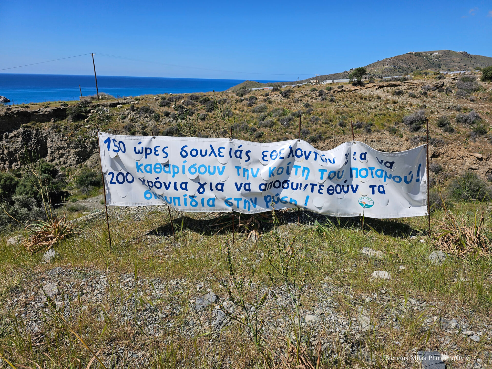 Λίγο πριν φτάσουμε στο μικρό χωριό Λέντας είδαμε αυτό το πανό στον δρόμο. Το έβαλε η πρωτοβουλία εθελοντών της περιοχής Create Lentas Green για να μας υπενθυμίσει ότι το περιβάλλον χρειάζεται την προστασία μας. Καθάρισαν ένα χείμαρρο που είχε γίνει σκουπιδότοπος, καθαρίζουν τις παραλίες της περιοχής και προσπαθούν να ευαισθητοποιήσουν τον κόσμο και τους τουρίστες για το περιβάλλον, τα πλαστικά, τα ντόπια βιολογικά προϊόντα. Επίσης κάνουν μεγάλη προσπάθεια για την βιώσιμη κατανάλωση και ανακύκλωση του πόσιμου νερού που το καλοκαίρι είναι λιγοστό. Τέτοιες πρωτοβουλίες ευαίσθητων ανθρώπων χρειάζεται το νησί και στις μεγάλες τουριστικές περιοχές αλλά δυστυχώς είναι λίγες. Χαρήκαμε πολύ που τον δρόμο τον δείχνει ένα μικρό χωριουδάκι ξεχασμένο στον νότο.