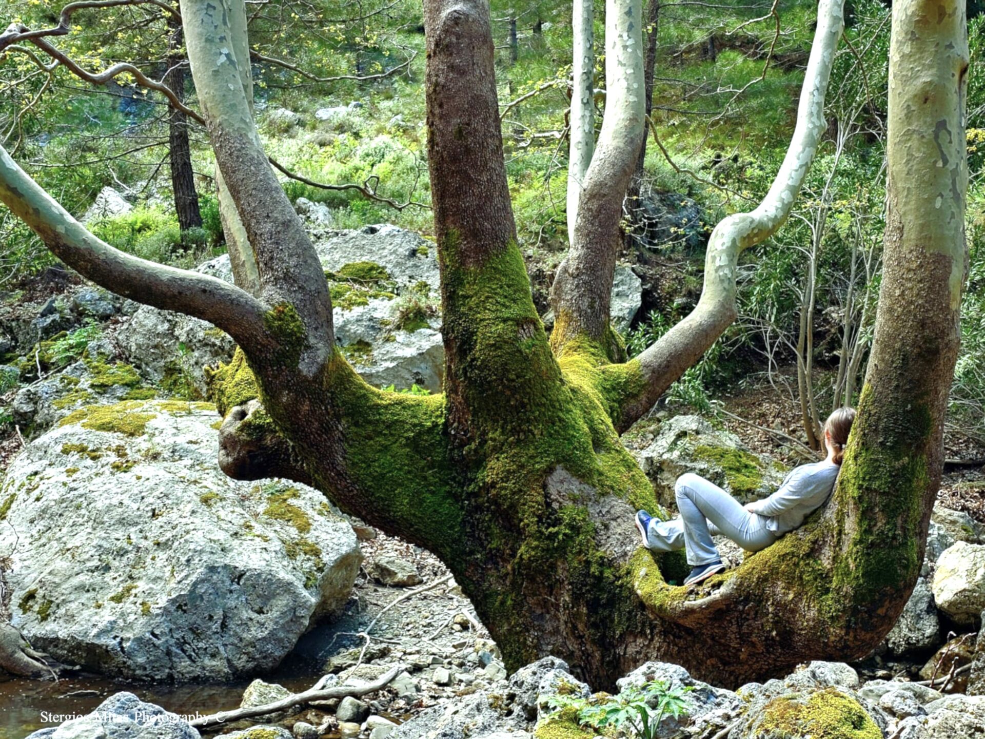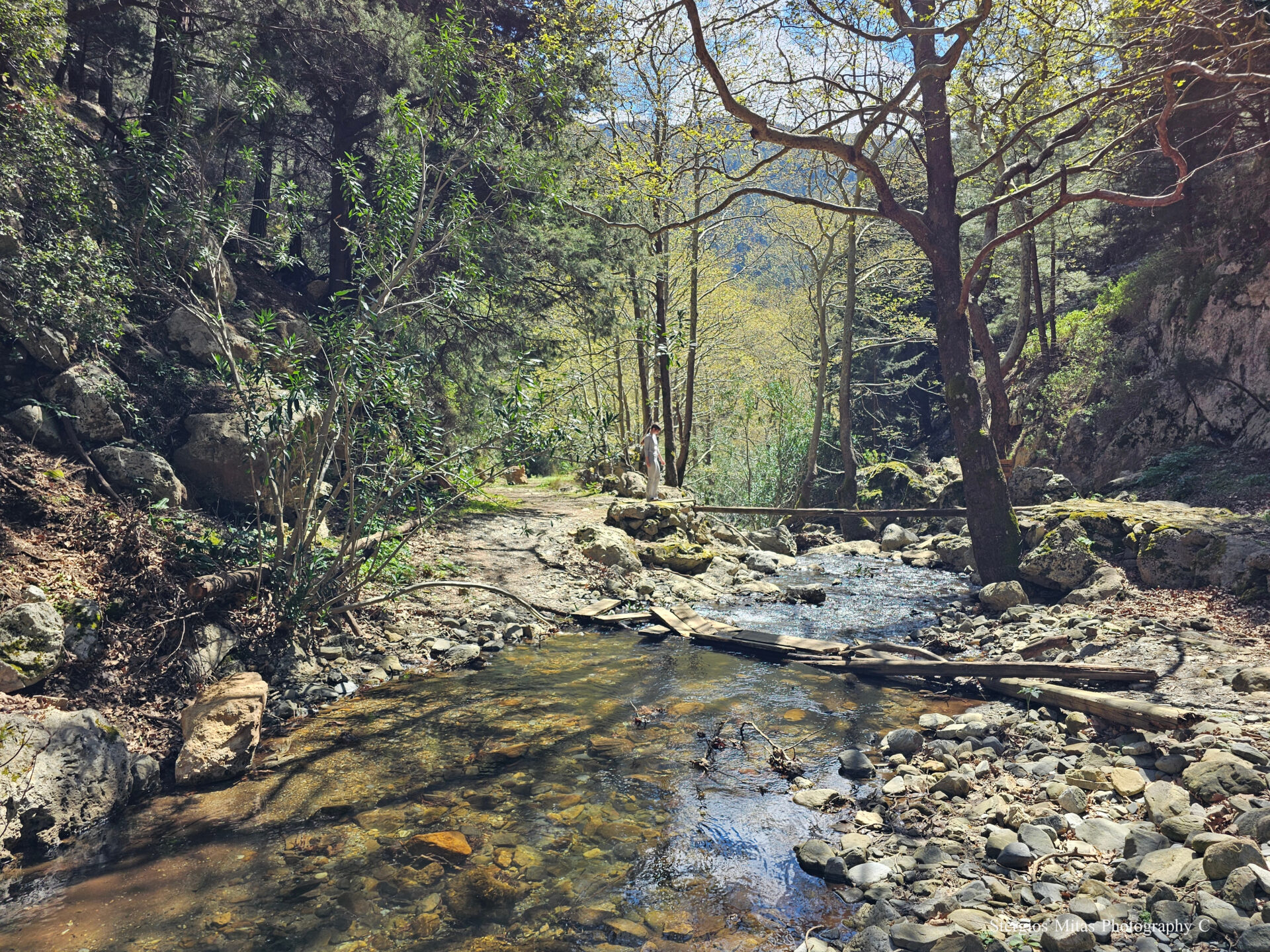 Μπορεί το φαράγγι της Σαμαριάς να το βρήκαμε κλειστό αλλά το κοντινό φαράγγι της Αγίας Ειρήνης ήταν ανοιχτό και μας καλούσε να το διασχίσουμε. Είναι ένα όμορφο και ήπιο φαράγγι σε περιοχή Natura. Έχει μήκος 7,5 χιλιόμετρα και είναι τμήμα του Ευρωπαϊκού μονοπατιού Ε4. Θέλεις περίπου τρείς ώρες να το διασχίσει. Είναι όμως τόσο όμορφο με τόση μεγάλη βιοποικιλότητα που θα κάνεις αρκετές στάσεις για να δώσεις χρόνο στον εαυτό σου να το βιώσει. Ήμασταν σχεδόν μόνοι και αυτό ήταν μια βαθειά εμπειρία απόλαυσης της φύσης. Το μόνο που ακούγαμε ήταν το νερό να κυλάει και τα πουλιά να κελαηδούν.
