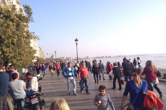 Χθες λοιπόν, μια Κυριακή με εξαιρετικό καιρό, παρά το προχωρημένο φθινόπωρο, μια Κυριακή γιορτινή με το Φεστιβάλ Κινηματογράφου σε πλήρη εξέλιξη, με τα καταστήματα ανοιχτά, σε μια άλλη πιλοτική εφαρμογή και με εκπτώσεις, ο ωραιότερος δρόμος της πόλης έκλεισε για τα αυτοκίνητα. Με την υποδειγματική εκεί πρόνοια της Τροχαίας να απομακρύνει τα παρκαρισμένα, που έτσι και αλλιώς παράνομα παρκάρουν, ο δρόμος παραδόθηκε στους πεζούς. Που κατέκλυσαν το κέντρο κατά δεκάδες χιλιάδες σε όλη τη διάρκεια της ημέρας, σε ένα πρωτοφανές ξέσπασμα εξωστρέφειας.