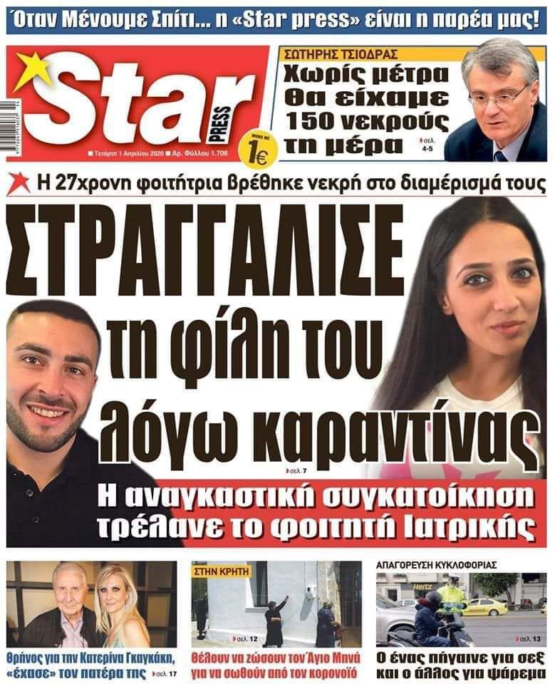 Μέχρι να έρθει το λόγω καραντίνας, ως το νέο “νταξ τα ‘θελε εδώ που τα λέμε”, “έγκλημα πάθους”, “ε κι αυτή κάτι θα του ‘κανε. Ώσπου να εμφανιστεί ο αέναος μπάσταρδος. Και επειδή δεν φτάνουν όλα αυτά, ας γράψει και φοιτητής ιατρικής, για να το διαβάσει ο θείος και η θεία και να πει: α το παιδί γιατρός ήταν, κάτι θα του έκανε βαρύ και θα έχασε την ψυχραιμία του.