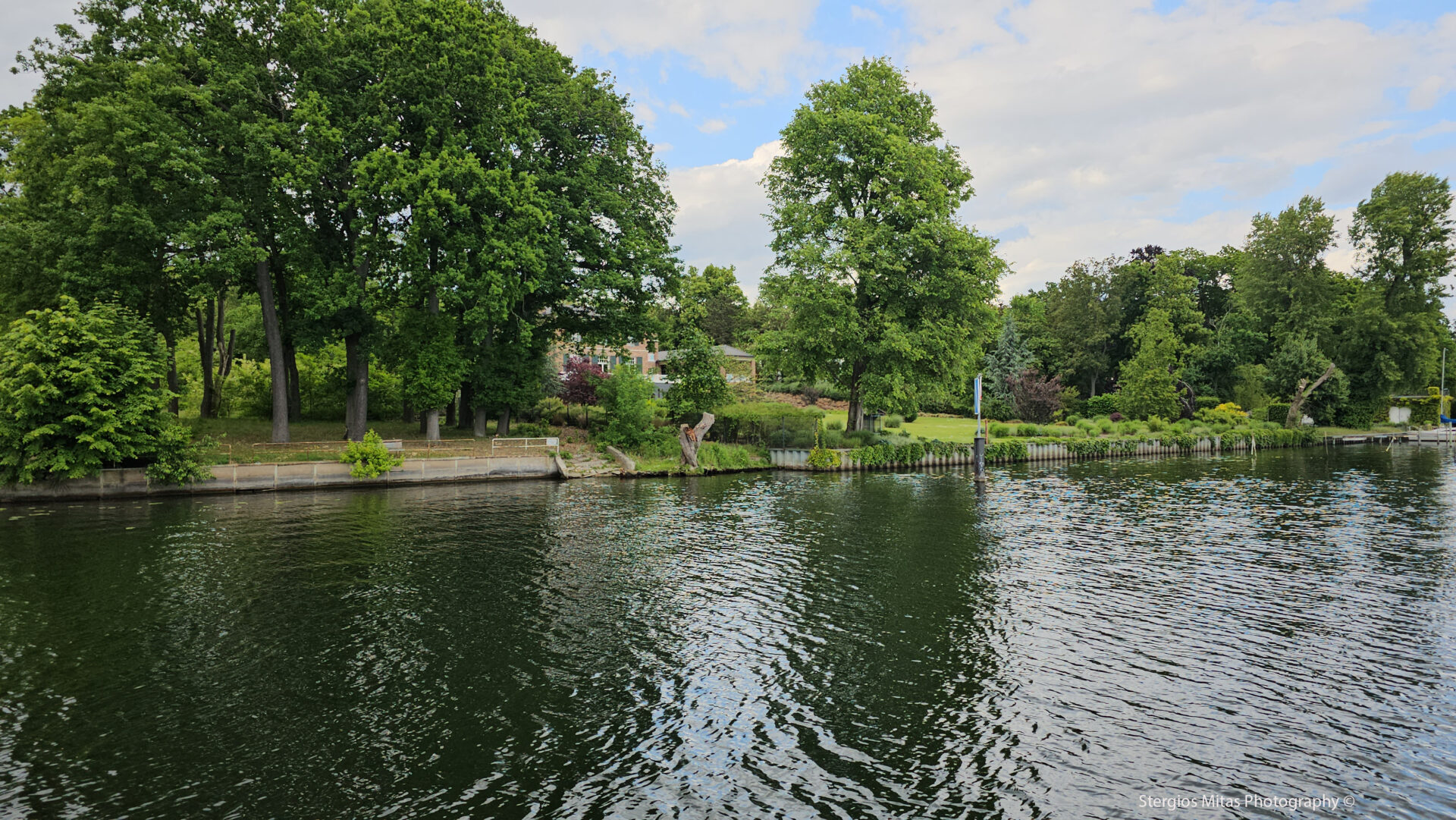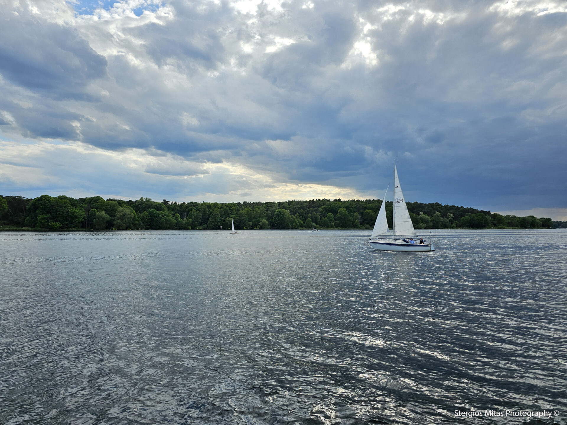 Το φέρι διασχίζει αργά την λίμνη, εσύ αρχίζεις να χαλαρώνεις και να χαζεύεις το τοπίο. Δάση, σπίτια με κήπους ως τη λίμνη, μικρές αποβάθρες, ιστιοπλοϊκά να περνάνε δίπλα μας μέσα σε ένα απογευματινό φως με υπέροχα σύννεφα. Στο κατάστρωμα του φέρι, παρατηρούσα τους Βερολινέζους, με ποδήλατα, με παιδιά, με βιβλία, με σκύλους με έναν τρόπο ήρεμο, πήγαιναν να απολαύσουν μια απογευματινή βόλτα.