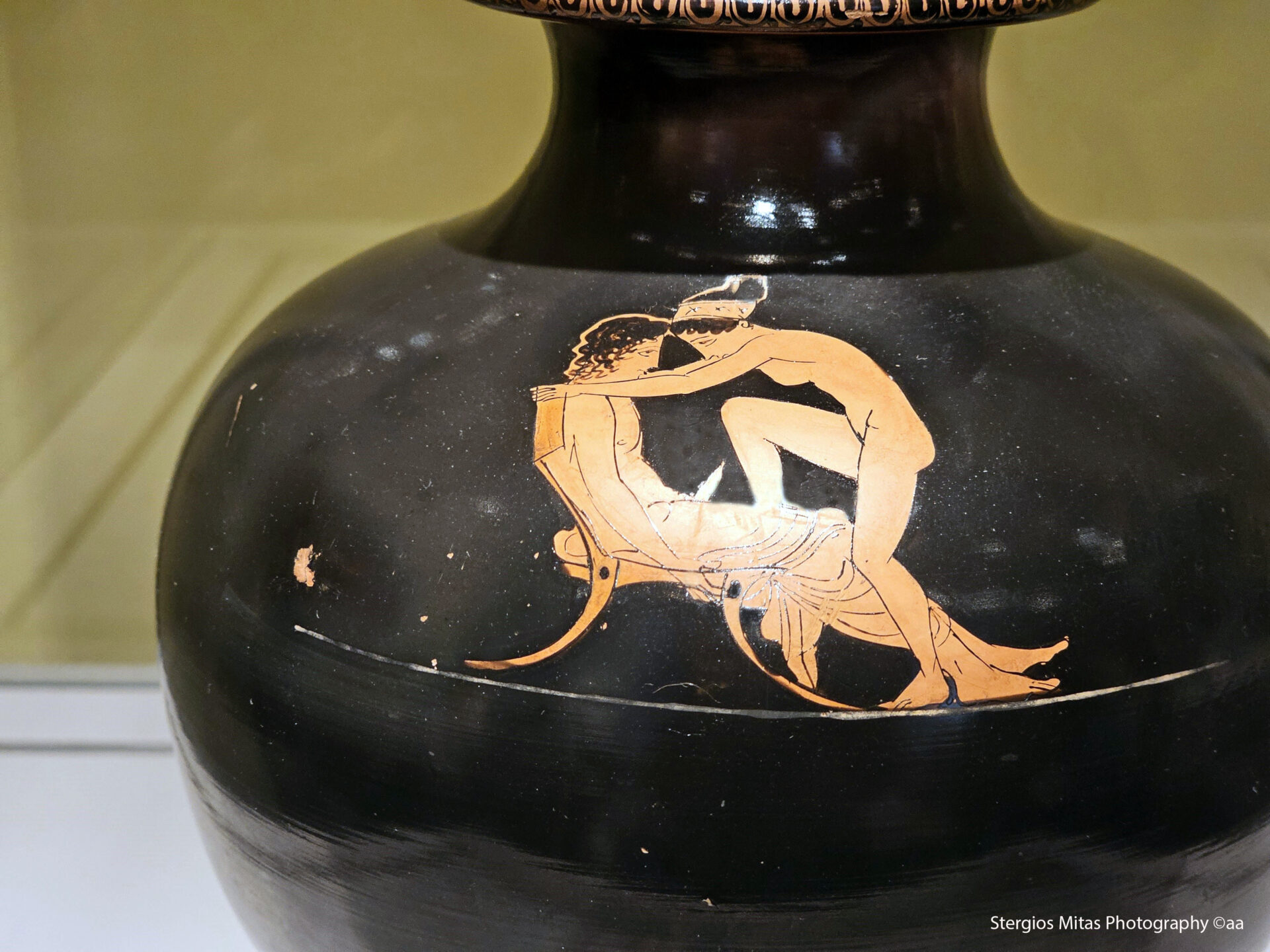 Ελληνικά αγγεία με ερωτικές σκηνές εκπληκτικά σε ρεαλισμό. Ήταν μια έκπληξη. Θα τα βρεις σε μια ιδιαίτερη αίθουσα του Μουσείου. Ετεροφυλοφιλικές σκηνές με εταίρες ή χορεύτριες, ομοερωτικές σκηνές κυρίως μεταξύ ανδρών και καθαρά ερωτικές παραστάσεις που απεικονίζουν σεξουαλικές στάσεις με πλήρη σαφήνεια και ρεαλισμό.