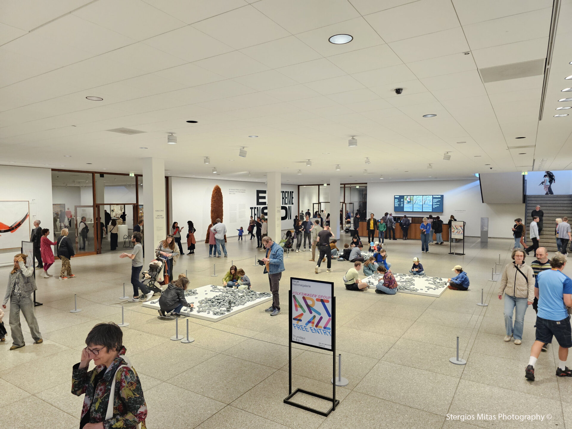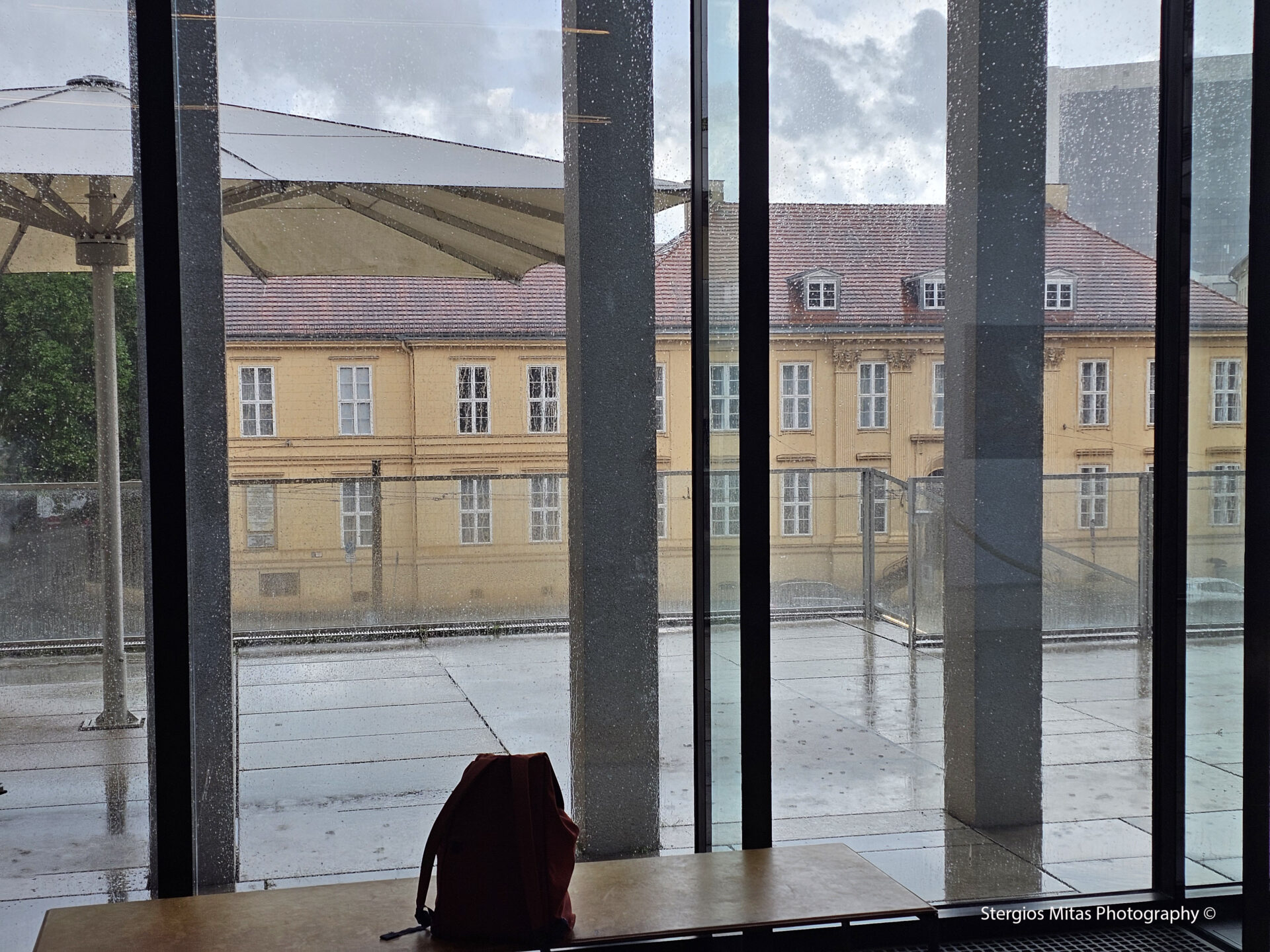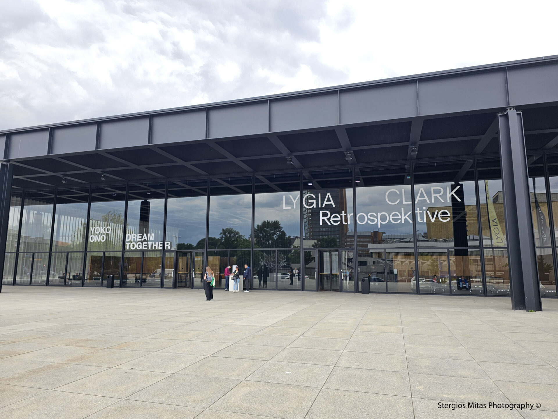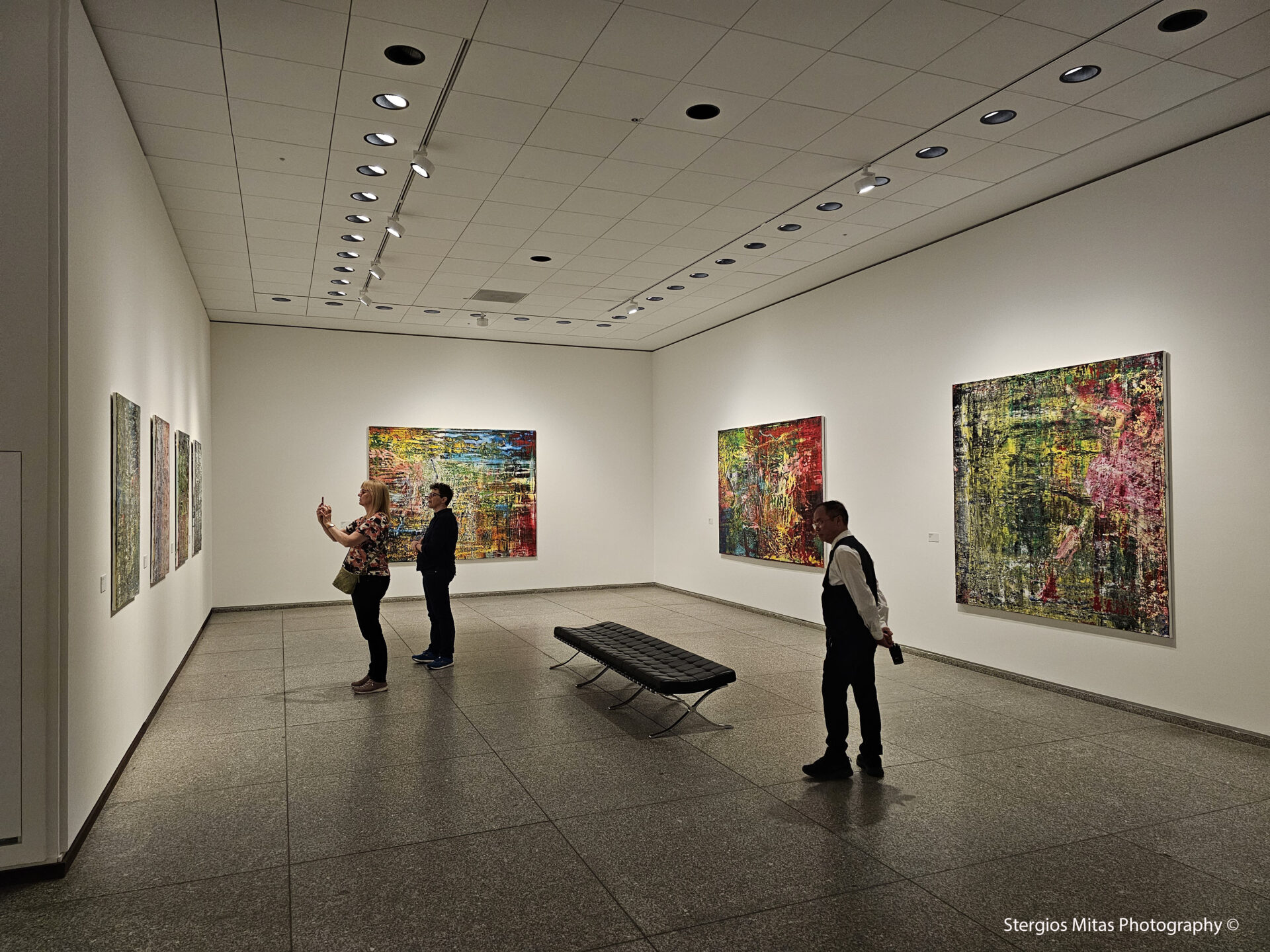 Τα Μουσεία είναι κουραστικά για το σώμα γιατί κινείσαι πολύ αργά, είσαι όρθιος συνέχεια και ‘’πιάνεσαι’’. Είχαμε μεγάλη ανάγκη να περπατήσουμε γρήγορα μέχρι το επόμενο μουσείο. Σε μισή ώρα ήμασταν σε ένα από τα σημαντικότερα μουσεία μοντέρνας τέχνης της Γερμανίας. Σχεδιάστηκε το 1968 από τον Ludwig Mies van der Rohe, έναν από τους πρωτοπόρους του μοντέρνου κινήματος στην αρχιτεκτονική. Η δομή του είναι εμβληματική: ένα γυάλινο “κουτί” με μεταλλικό σκελετό που αιωρείται πάνω από μια πέτρινη βάση. Σύμβολο της καθαρότητας, της διαφάνειας και της γεωμετρίας του Μοντερνισμού. Έμεινε κλειστή από το 2015 έως το 2021 για πλήρη ανακαίνιση. Εκθέτει κυρίως έργα μοντέρνας τέχνης του 20ού αιώνα ενώ συχνά φιλοξενεί προσωρινές εκθέσεις σύγχρονης τέχνης. Όταν πήγαμε είχε εξαιρετικές προσωρινές εκθέσεις. Πήγα κατευθείαν σε έναν από τους αγαπημένους μου Γερμανούς ζωγράφους τον Gerhard Richter.