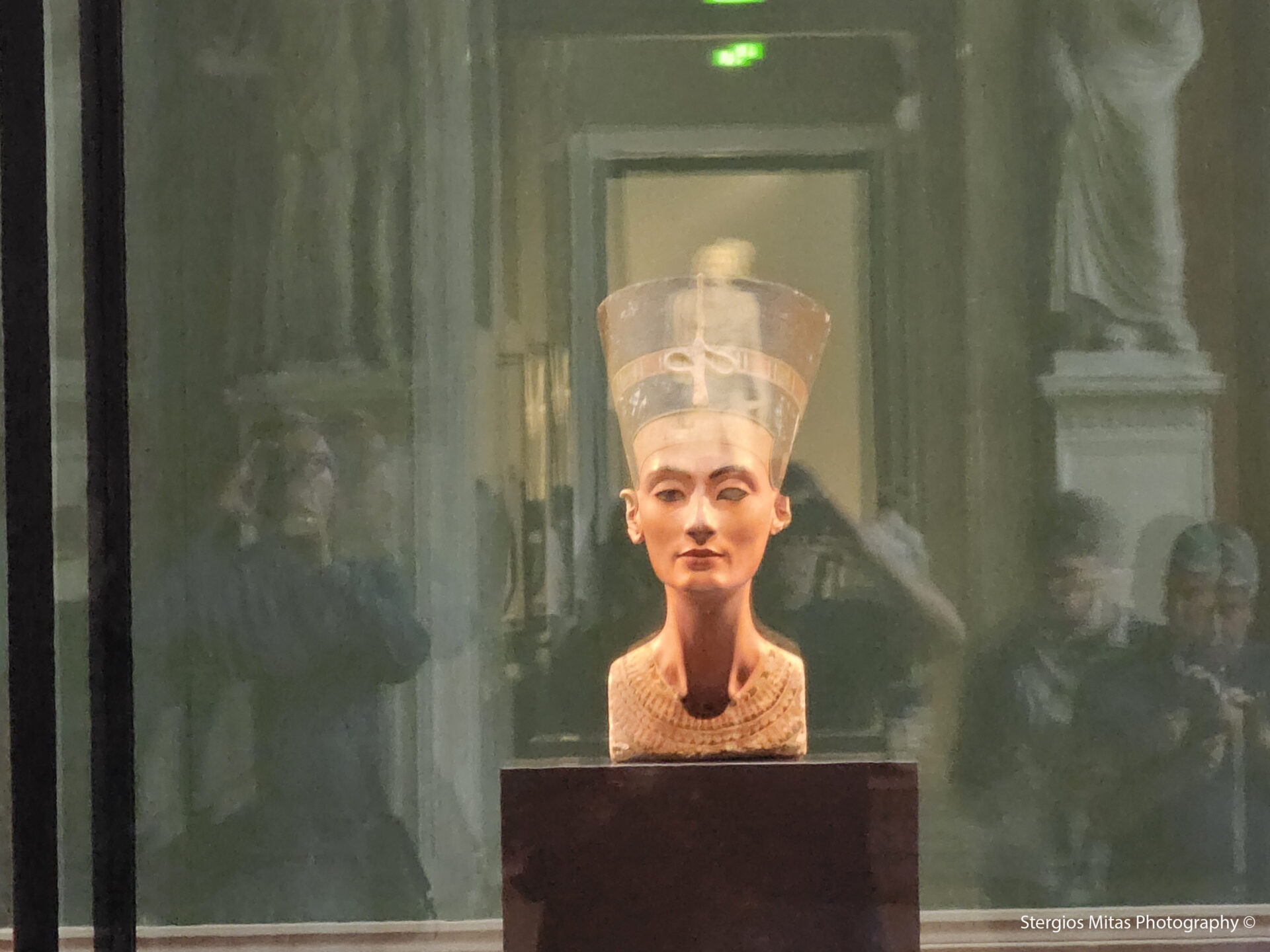 Η Νεφερτίτη εκτίθεται μόνη της σε ξεχωριστή αίθουσα και δεν επιτρέπονται οι φωτογραφίες. Θα πάς έξω από την αίθουσα και από εκεί σε συγκεκριμένο σημείο θα σου επιτρέψουν να βγάλεις μια φωτογραφία. Είναι όμως πολύ μακριά για να έχεις καλή ποιότητα, το βλέπεις και στην δική μου φωτογραφία.