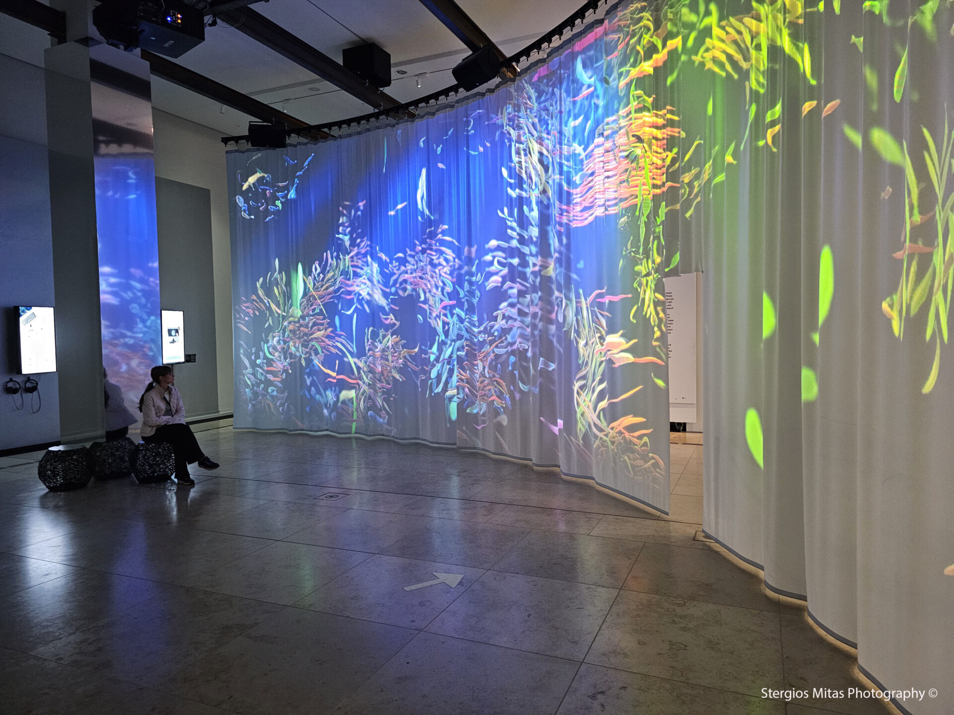 Στη φωτογραφία η Αρετή βλέπει ένα διαδραστικό κοπάδι ψαριών το οποίο αντιδρά στις κινήσεις της. Είναι μια σαφής αναφορά στην ευαισθησία και την απειλή που αντιμετωπίζουν τα παγκόσμια οικοσυστήματα από τον άνθρωπο. Αυτές οι αλλαγές όμως δεν είναι μόνο απειλή για το οικοσύστημα αλλά έχουν και μεγάλες επιπτώσεις στις πολιτικές και κοινωνικές δομές των κοινωνιών. Η κλιματική αλλαγή δεν είναι μόνο ένα περιβαλλοντικό φαινόμενο – είναι βαθιά πολιτικό και κοινωνικό ζήτημα που ήδη αναδιαμορφώνει τις δομές των κοινωνιών μας με πολλαπλούς τρόπους. Ποιοι είναι αυτοί;