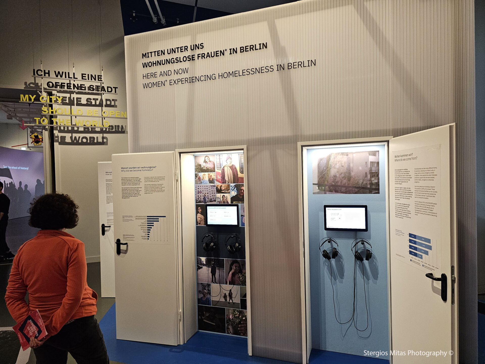 Στο Βερολίνο λοιπόν των μουσείων, των πάρκων και των ανοικτών ιδεών, υπάρχει ένα κομμάτι της πόλης που μένει σιωπηλό. Όχι από αδιαφορία, αλλά από κόπωση, φόβο, ντροπή. Είναι οι γυναίκες που ζουν χωρίς στέγη. Που κοιμούνται στο μετρό, φιλοξενούνται προσωρινά σε ξένους καναπέδες ή επιλέγουν να κρύβονται για να προστατευθούν. Στην έκθεση “Mitten unter uns – Here and Now” στο Humboldt Forum, η πόλη ανοίγει έναν χώρο για αυτές. Έστω για λίγο. Μέσα σε ένα δωμάτιο με πόρτες-εκθέματα και ακουστικά, ακούς τις φωνές τους.