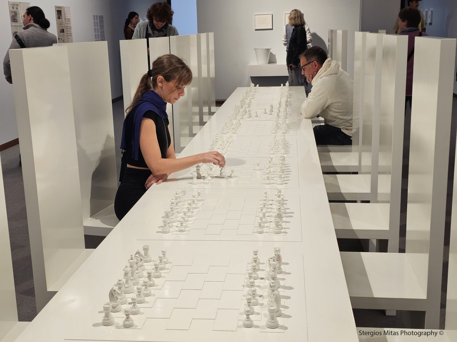 Η έκθεση αυτή είναι μια αναδρομή στο έργο της Yoko Ono, ένα σύμβολο της 60s avant-garde, που προβάλει εδώ το διαδραστικό και συλλογικό έργο της αποδεικνύοντας τη δύναμη της τέχνης να μιλήσει για ειρήνη, αγάπη και αλληλεγγύη. Μολονότι τα έργα της Yoko Ono είναι παλιά, συνεχίζουν να είναι σύγχρονα και επιδραστικά γιατί δεν θέλει απλώς να βλέπεις, αλλά να συμμετέχεις. Εδώ μπορείς να παίξεις σκάκι σε μια μεγάλη σκακιέρα μόνο με λευκά πιόνια για να συνεργαστείς σε μια ειρηνική λύση. Μπορείς να κολλήσεις κομμάτια από σπασμένα φλιτζάνια σαν μια πράξη ψυχοπνευματικής συμφιλίωσης. Μπορείς επίσης να βάλεις πέτρες σε μια δική σου τοποθέτηση για να έχεις εσωτερική ενδοσκόπηση.