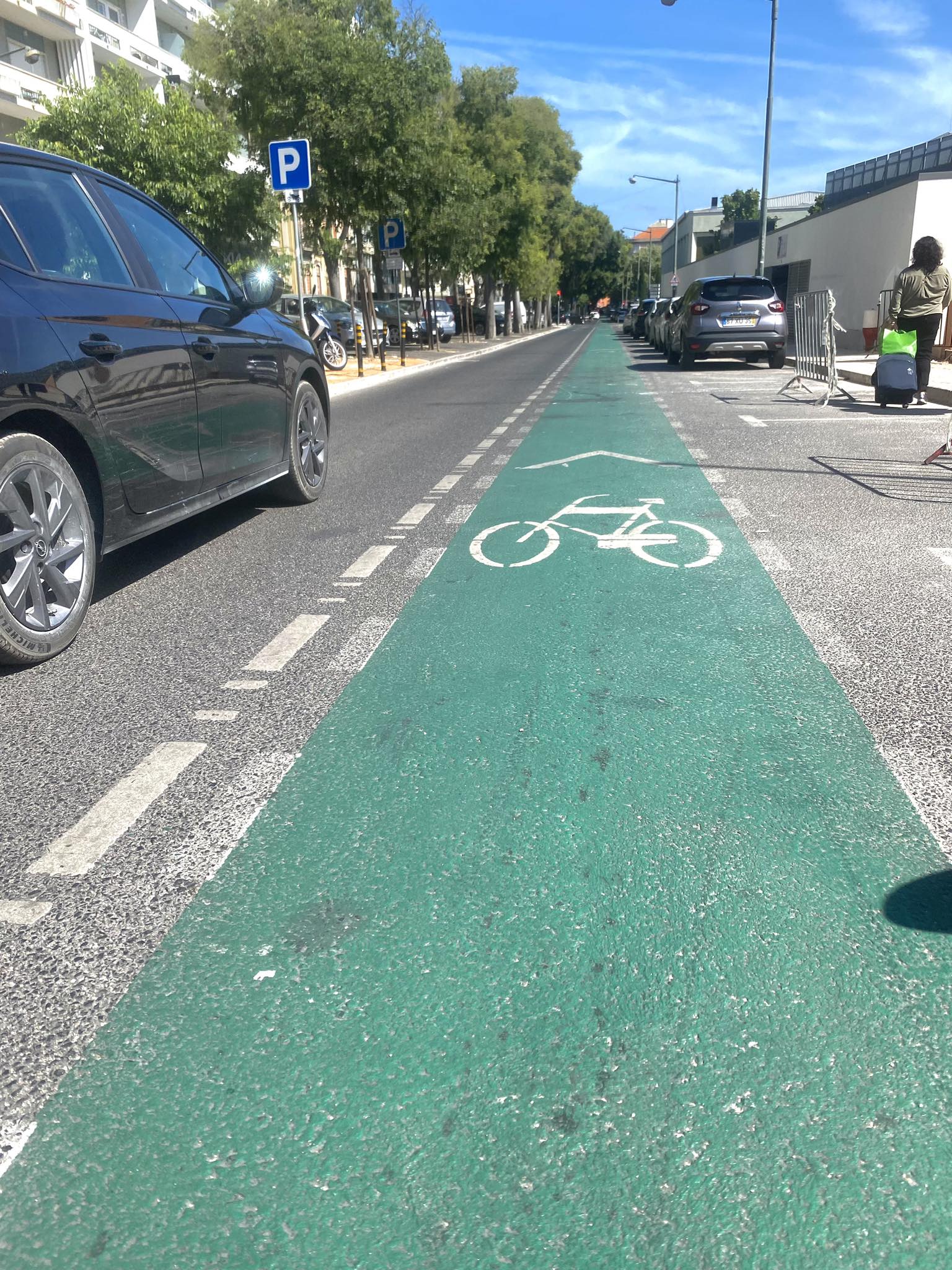 Κυριακή πρωί στη γειτονιά Saldanha της Λισαβώνας. Κάτι παραπάνω από μισή ώρα μακριά από το ιστορικό κέντρο. Περπατώ σε μια ασυνήθιστη γαλήνη. Στο οδόστρωμα ένας ποδηλατόδρομος έντονα σηματοδοτημένος με πράσινο χρώμα αποτελεί την ασφαλή δίοδο των ποδηλατών που απολαμβάνουν την κυριακάτικη βόλτα τους. Κανείς δεν διανοείται να πατήσει πάνω του, αν και βρίσκεται στη μέση του οδοστρώματος, δεν χρειάζονται κολωνάκια προστασίας, δεν υπάρχει ούτε μισό διπλοπαρκαρισμένο αυτοκίνητο.