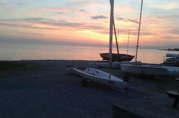 Σαν βγεις στον πηγαιμό για το ΙΚΕΑ, χαλάρωσε και χάσε την υπόγεια στροφή. Πενήντα μέτρα μετά, μπορείς να στρίψεις στη θάλασσα, και να βρεθείς σε ένα μέρος μαγικό. Ακτή Πυλαίας είναι εκεί, όσο κι αν εκπλήσσει, κι ακόμη περισσότερο εκπλήσσει ο χώρος που έφτιαξε με πολύ μεράκι ένας τρελαμένος ιστιοπλόος. Δέκα μέτρα από τον πολύβουο δρόμο, σ’ ένα παλιό καρνάγιο, με φόντο καράβια που έχουν δει καλύτερες μέρες, ο Μπάμπης Ψωμιάδης έστησε έναν ιστιοπλοϊκό όμιλο, αλλιώτικο από τους άλλους. Αστραφτερά topaz και πιο… παιδικά taz περιμένουν τον έμπειρο ή τον άσχετο να τα βάλει στη θάλασσα ν’ αρμενίσουν. Μια γοητευτική κατασκευή από θαλασσοδαρμένα μαδέρια, σκεπασμένη με μια δροσερή τέντα περιμένει αυτούς που απλά θέλουν να χαζέψουν την παρέα τους που ανοίγεται στο Θερμαϊκό, να αράξουν δίπλα στο κύμα και να μετράν τα αεροπλάνα που προσγειώνονται στο αεροδρόμιο παραδίπλα. Κι ένα παροπλισμένο λεωφορείο της πάλαι ποτέ κραταιής Ολυμπιακής του Ωνάση, παίζει το ρόλο της καντίνας, με τα ψυγεία της γεμάτα αναψυκτικά και μπίρες.