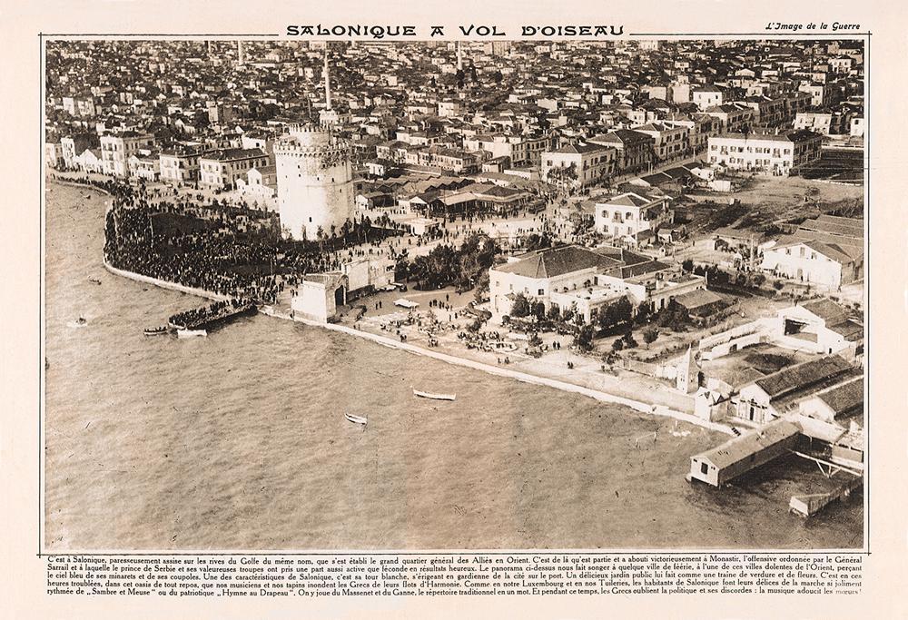 Και η ίδια η πόλη. Μια κοσμοπολίτισσα πλανεύτρα, που κρατά το ανατολίτικο στοιχείο της στις οθωμανικές συνοικίες ψηλά στα Κάστρα και προσφέρει στο διψασμένο ξένο στρατιώτη ή τον ταξιδιώτη της εποχής το όνειρο μιας ευρωπαϊκής μεγαλούπολης. Με προκυμαίες, ξενοδοχεία θρυλικά όπως το Olympos Palace, Grande Bretagne, Rome, Imperial και Splendind Palace την εντυπωσιακή Πλατεία Ελευθερίας με κοσμοπολίτικα καταστήματα ενδυμάτων όπως το Stein, τον κινηματογράφο Pathe που παίζει ταινίες που ταυτόχρονα βλέπει το Παρίσι και το Λονδίνο, το Crystal και τα άλλα μυθικά καφέ που γίνεται το αδιαχώρητο από Ευρωπαίους που πίνουν τα απεριτίφ τους. Κοστουμαρισμένοι ή με λασπωμένες στολές, λαμπερά κορίτσια των καμπαρέ πλάι σε αρτίστες. Ένα πολύβουο πλήθος που κορυφώνονταν κάθε απόγευμα αποθεώνοντας τη ζωή ενάντια στον πόλεμο.