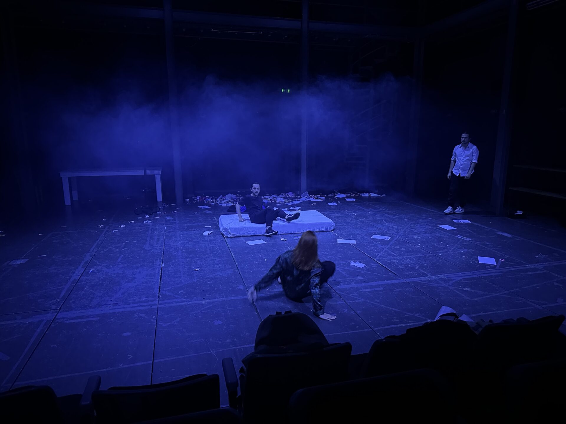Και μια σημαντική σημείωση. Το Τμήμα Θεάτρου με λειτουργία από το 1992 (ιδρύθηκε το 1984 αλλά οι πρώτοι φοιτητές εισήχθησαν το 1992) κάτι που φαίνεται να αγνοείται από τη νυν κυβέρνηση- προάγει τη θεατρολογική έρευνα συνδυάζοντας την πρακτική με τη θεωρητική κατάρτιση. Σε καιρούς όπου η δημόσια παιδεία βρίσκεται σε ριψοκίνδυνη συνθήκη οι σπουδαστές και το προσωπικό του τμήματος επιδεικνύουν υψηλά επίπεδα αλληλεγγύης και αλληλοβοήθειας, δηλώνοντας ότι παρόλο τα πολλά προβλήματα που αντιμετωπίζει η πανεπιστημιακή κοινότητα, η δημόσια παιδεία οφείλει να περιφρουρηθεί με κάθε δυνατό τρόπο. Στην παράσταση συμμετείχαν επί σκηνής περί τους 30 σπουδαστές, ενώ ένα επιτελείο τεχνικών (επίσης σπουδαστών) λειτουργούσε «κάτω» από τη σκηνή για να μπορέσει να υλοποιηθεί το όραμα των 6 σκηνοθετών. Μετά από πολύωρες και βασανιστικές πρόβες όλα τα παιδιά με την εθελοντική τους συνεισφορά κατάφεραν να βγάλουν ένα αντάξιο για το υψηλό επίπεδο της σχολής αποτέλεσμα. Ως εισηγητής καθηγητής και επόπτης του εγχειρήματος με μια φράση θα χαρακτήριζα τη όλη διαδικασία: η καλλιτεχνική δημιουργία στα ανώτατα επίπεδα της εκπαίδευσης αυτό-οργανώνεται και ανασυστήνεται διαρκώς μέσα από την ερευνητική διαδικασία. Κλειδί όχι τόσο για την επιτυχία αλλά για τον πολιτικό χαρακτήρα του θεάτρου και της εκπαίδευσης.