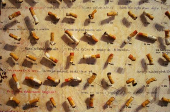 Παλιές φωτογραφίες, που περιγράφουν με τον καλύτερο τρόπο όψεις της πόλης που χάθηκε, πορτραίτα, γκραβούρες και καρτ ποστάλ, εισιτήρια και λαχεία, μενού εστιατορίων, λογότυπα, κουτιά από φάρμακα, μπουκάλια από αρώματα, λικέρ και γκαζόζες, αποκόμματα εφημερίδων, πορτραίτα ηθοποιών, τραγουδιστών και ποδοσφαιριστών, διαφημιστικά κινηματογραφικών ταινιών, σκουλαρίκια και κολιέ, αλατιέρες, δαχτυλήθρες και μολύβια, χτενάκια και πεταλούδες για τα μαλλιά, βεντάλιες και κλειδιά, σπιρτόκουτα και τραπουλόχαρτα, παστίλιες για το λαιμό, νομίσματα και κουμπιά, παιδικά παιχνίδια, ένα παλιό ταξίμετρο, ραδιόφωνα, φλιτζάνια τσαγιού και ποτήρια με ρακί, ρολόγια και κουταλάκια, πλάκες σαπουνιού, ακόμη και 4213 τσακισμένες γόπες με ίχνη από κραγιόν σε εικαστική εγκατάσταση, αναδεικνύουν την ποίηση των απλών πραγμάτων και αναβιώνουν την εποχή της αθωότητας, του νεανικού ενθουσιασμού, της ακλόνητης πίστης στο μεγάλο έρωτα, τις μυρωδιές, τις κινήσεις, τα βλέμματα, τα φιλιά, τα αισθήματα, επιτυγχάνοντας τελικά την εξόρυξη και δικών μας αναμνήσεων. Μαζί και τα χειρόγραφα και οι σημειώσεις του συγγραφέα, με ανάγλυφες τις στιγμές της έμπνευσης και εκείνες της αμηχανίας μπροστά στο άσπρο χαρτί, για να καταγραφεί η ιστορία που θα ενώσει σαν μια γραμμή τις στιγμές και τα αντικείμενα που την πλαισίωσαν.