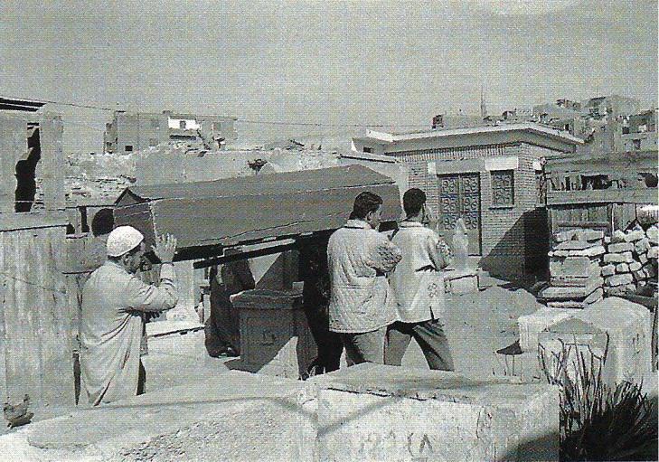 Ψυχές και ζωντανοί συνομιλούν, συνυπάρχουν, συντροφεύονται καθημερινά. Δεν ενοχλούνται, δεν νιώθουν ότι απειλούνται από μια ξένη παρουσία. Τα παιδιά, που γεννιούνται και μεγαλώνουν εκεί, παίζουν επάνω στις ταφόπλακες, όπως άλλα συνομήλικά τους σε αλάνες. Και βρίσκονται στην καρδιά του Καΐρου.