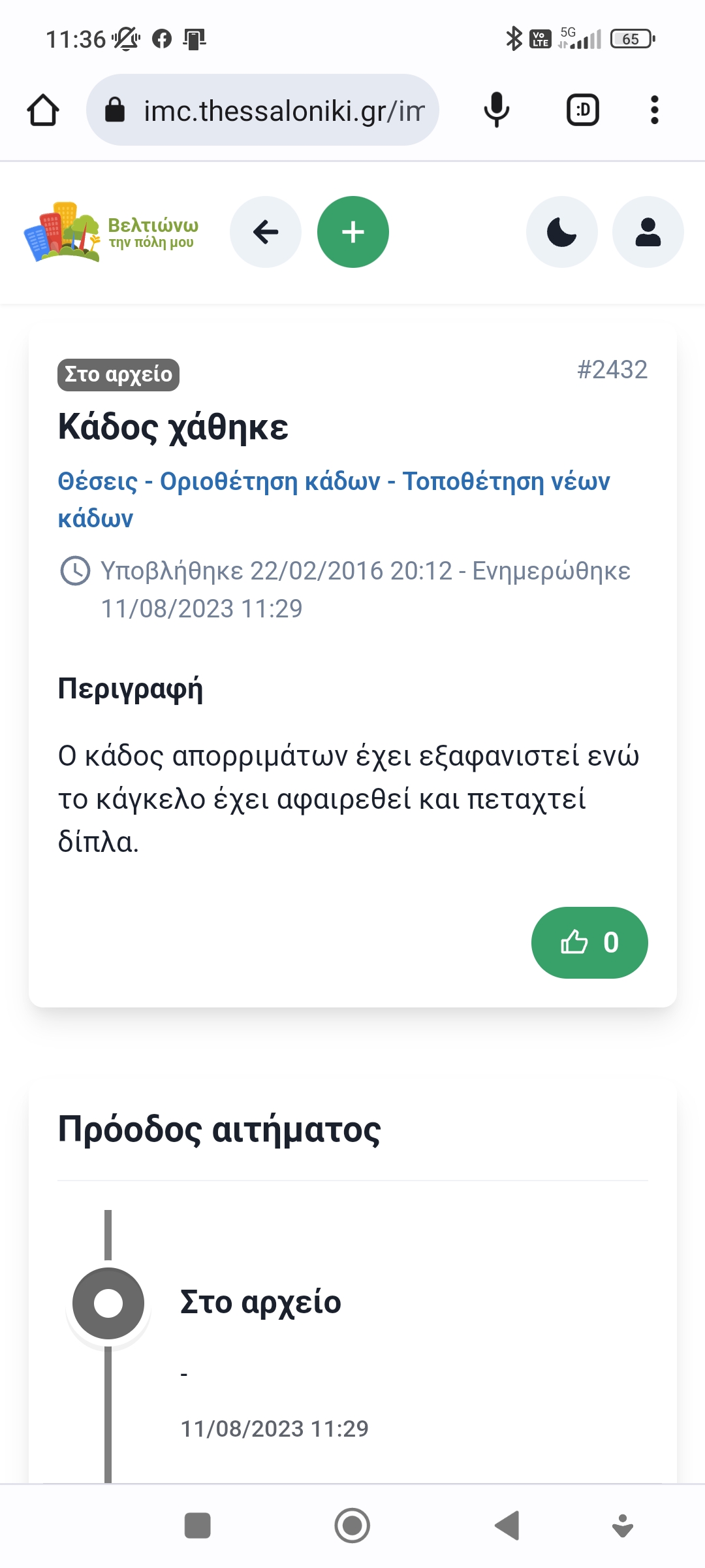 Μία απίστευτη ιστορία με καταγγελία που έγινε το 2016 στο site «Βελτιώνω την πόλη μου» και μετά... από μόλις 7 χρόνια δεν λύθηκε αλλά μπήκε στο αρχείο