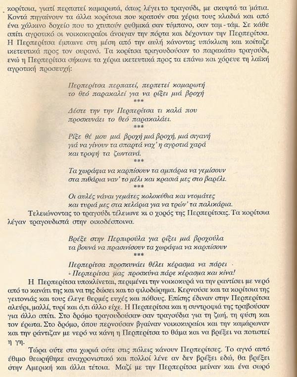 Περπερίτσα περπατεί το θεό παρακαλεί Θεέ μου ρίξε μια βροχή μια βροχή βασιλική.