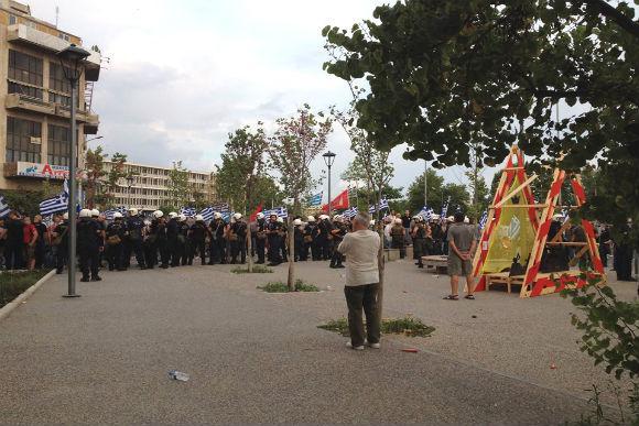 Την ώρα λοιπόν που η Κρούση ξόρκιζε με τα τύμπανα της το φόβο και τα σκοτάδια που στοιχειώνουν στη γειτονιά και εκατοντάδες άνθρωποι παρακολουθούσαν στον υπαίθριο χώρο εμπρός της τη συναυλία μια πορεία μελών της Χρυσής Αυγής άρχισε να πλησιάζει την εκδήλωση μας για να καταλήξει στα γειτονικά της γραφεία. Χωρίς καμία απολύτως πρόκληση από μας ή τους μουσικούς γίναμε μάρτυρες αλλά και θύματα μιας πρωτοφανούς επίθεσης, στην αρχή λεκτικής και μετά με ρίψη αντικειμένων, μπουκαλιών και πετρών, που άρχισαν να εξεσφενδονίζουν προς την πλευρά των μουσικών φωνάζοντας απειλητικά: Τα τύμπανα σας και στην Αφρική και Ανάρχες θα σας φάμε.