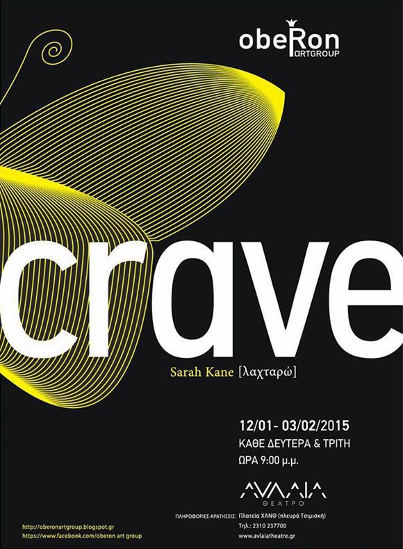 Το Crave, είναι από τα πολυδιαβασμένα και αγαπημένα κείμενα της Sarah Kane. Ο απόλυτος, καταιγιστικός και παραληρηματικός έρωτας που τσακίζει το υπερφίαλο ‘’Εγώ’’ λαχταρώντας απεγνωσμένα το σωτήριο και δοτικό ‘’Εμείς’’. Η ηθοποιός Δήμητρα Σιάχου, μας συστήνει το Crave, μέσα από την καλλιτεχνική ματιά της ομάδας τέχνης Oberon. ‘’ Άλλωστε ο έρωτας είναι κάτι που δεν έχει ηλικία, φύλο, τάξη. Δεν κατηγοριοποιείται. Δεν εντάσσεται.’’