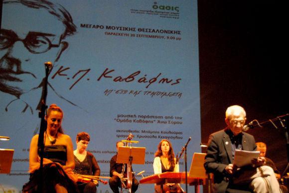 Μια εξαιρετική βραδιά λατρείας και έρωτα για τον Αλεξανδρινό ζήσαμε χθες στο Μέγαρο Μουσικής Θεσσαλονίκης με την Ομάδα Καβάφης να μας υποδέχεται και να μας σεργιανίζει απ’εξω και τραγουδιστά στους στίχους του μεγάλου ποιητή. Μια βραδιά κόντρα σε όσα ο Κ.Π. Καβάφης περιγράφει για τις συναναστροφές και την καθημερινή ανοησία, που εξευτελίζουν την ψυχή και την κάνουν να μοιάζει στο τέλος φορτική. Μια βραδιά που την ύπαρξη σου δυναμώνει από τις 9… άραγε πώς πέρασαν οι ώρες; Μια βραδιά που μας έβγαλε θεατές και συντελεστές έξω από τα τείχη, άνοιξε τα σφαλιστά παράθυρα… κι ας είναι όπως ανησυχεί ο Αλεξανδρινός το φως μια νέα τυρρανία. Είναι μια νέα τυρρανία όχι σαν κι αυτή της τυφλότητας αλλά μια νέα οδοιπορία –τυρρανική ενίοτε- προς την αυτογνωσία και την ανάταση. Μια βραδιά όπου το σώμα και η ψυχή συνταράχτηκαν από τις δονήσεις των στίχων, του πλούτου και της σοφίας του πνεύματος του Καβάφη. Μια βραδιά με εξαιρετικές φωνές, όμορφες παρουσίες και πολύ συναίσθημα. Το συναίσθημα των μελών της ομάδας Καβάφης με την αφοσίωση του Μπάμπη Κουλούρα, τη ζεστή φωνή της Χρυσούλας Κεχαγιόγλου στο τραγούδι, την κρυστάλλινη και απαλή νότα της Νικολέττας Ρούσσου στην αφήγηση και όλους τους μουσικούς που σεβάσμια απέδωσαν μελοποιήσεις. Τελευταία μνεία στον Αλέξη Κωστάλα που αυτή η μικρή του παρουσία στη σκηνή πρόσφερε ρίγος.