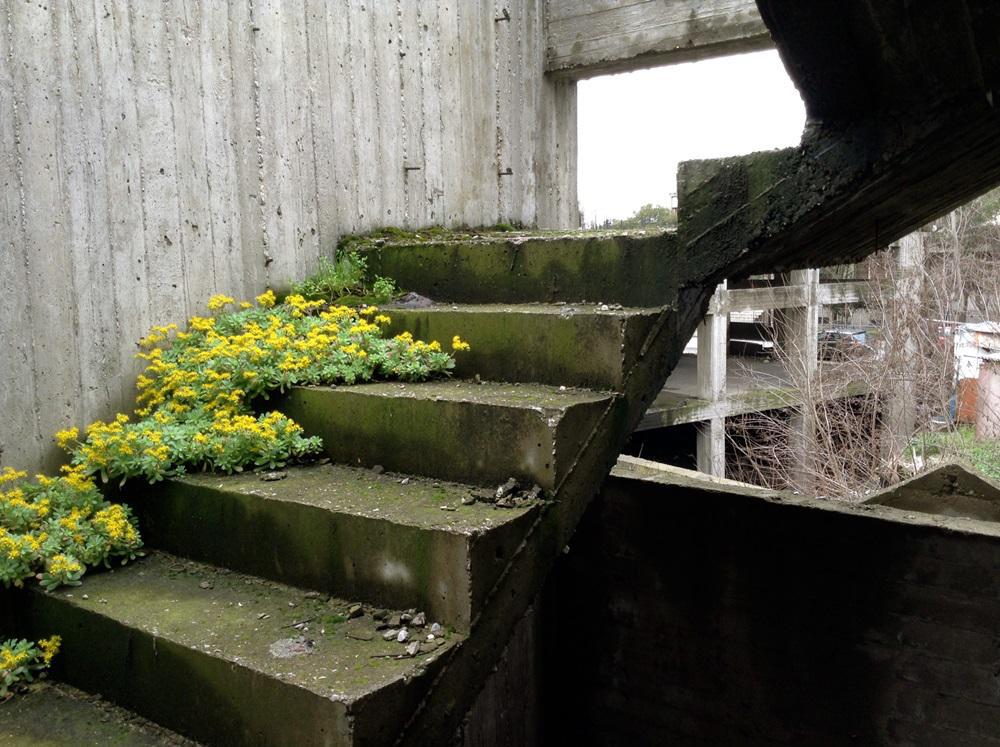 Κι όμως, το ίδιο το κτίσμα διαθέτει ενός είδους ομορφιά. Κίτρινα λουλούδια φυτρώνουν στις σκάλες. Υπάρχει ένας ορθογώνιος σχηματισμός με μορφή κηρήθρας μεταξύ των δυο κτιρίων. Από μέσα, η εξωτερική γειτονιά δείχνει πολύχρωμη, σαν εικόνες που πλαισιώνονται από τσιμέντο.