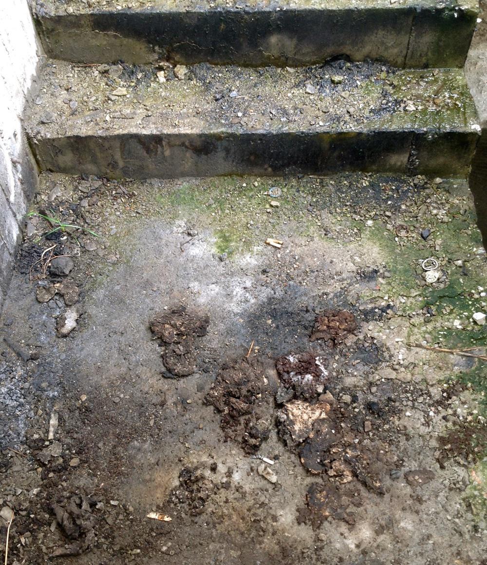 Οι πόρτες ήταν ανοιχτές για να περάσει ο οποιοσδήποτε. Μέσα, βρήκα δυο δωμάτια. Και τα δυο ήταν γεμάτα με σκουπίδια, λασπώδεις λεκέδες και γυαλιστερές κόκκινες κηλίδες. Όταν κοίταξα πιο κοντά, είδα πως οι κόκκινες κηλίδες ήταν περιτυλίγματα προφυλακτικών. Οι λασπώδεις λεκέδες ήταν περιττώματα. Μάλιστα, τα περιττώματα που είδα ήταν τόσο πρόσφατα, που ήταν ακόμα υγρά. Το αν άνθρωπος ή σκυλί είχε αφοδεύσει μέσα στο σπίτι λίγο προτού φτάσω, δεν το γνωρίζω.