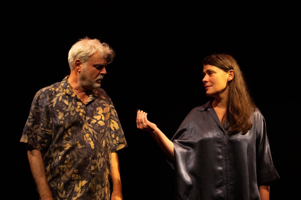 Δύο ερμηνείες εξαιρετικές. Δουλεμένες, συντονισμένες. Η σκηνοθετική συνεργασία του Ροντρίγκες με την Αργυρώ Χιώτη απέδωσε καρπούς. Ο Νίκος Καραθάνος και η Μαρίσσα Τριανταφυλλίδου πέτυχαν μια εντυπωσιακή σκηνική ταύτιση: μιλούν, κινούνται, αναπνέουν σαν σώματα που μοιράζονται μνήμη και συναίσθημα. Δεν υποδύονται απλώς ένα ζευγάρι· ενσαρκώνουν τη μακρά διάρκεια της συνύπαρξης.