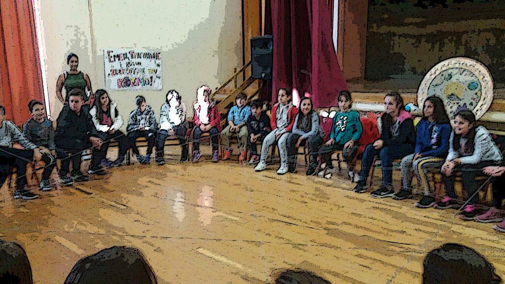 Μπαίνουμε χωρίς κανένα επεισόδιο και πάμε στην ευρύχωρη αίθουσα του γυμναστηρίου, πολλαπλών χρήσεων… Η διευθύντρια και η γυμνάστρια του σχολείου έμπειρες στην τάξη, έμπειρες στα διαπολιτισμικά παιχνίδια που σπάζουν τον πάγο μεταξύ των παιδιών που δεν γνωρίζονται. Κάποιες εκπαιδευτικοί με αναγνωρίζουν από σεμινάρια και εργαστήρια. Μου ζητούν συμπαράσταση. Υπόσχομαι να είμαι πλάι τους και το εννοώ.
