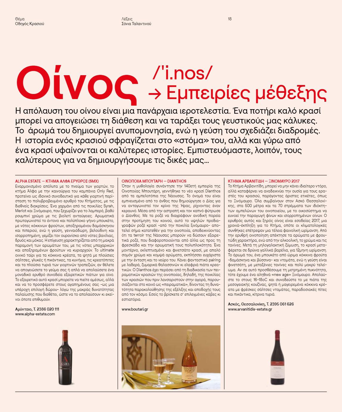 Η απόλαυση του οίνου είναι μια πανάρχαια ιεροτελεστία. Ένα ποτήρι καλό κρασί μπορεί να απογειώσει τη διάθεση και να ταράξει τους γευστικούς μας κάλυκες. Το άρωμά του δημιουργεί ανυπομονησία, ενώ η γεύση του σχεδιάζει διαδρομές. Η ιστορία ενός κρασιού σφραγίζεται στο «στόμα» του, αλλά και γύρω από ένα κρασί υφαίνονται οι καλύτερες ιστορίες. Εμπιστευόμαστε, λοιπόν, τους καλύτερους για να δημιουργήσουμε τις δικές μας…