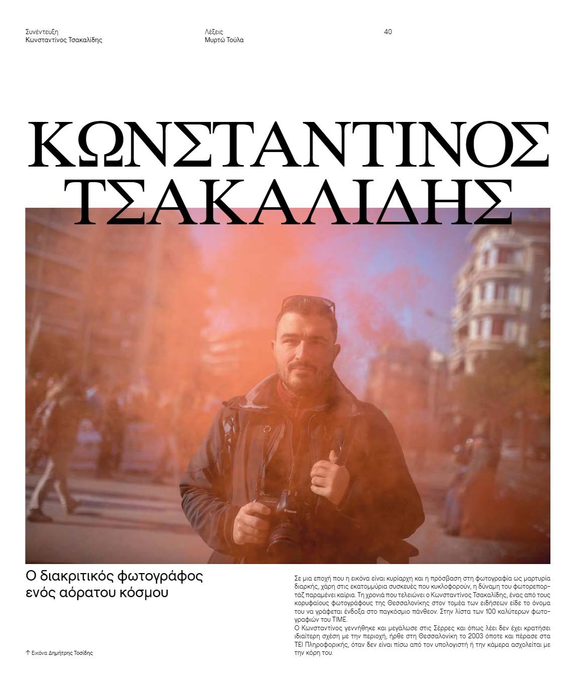 Σε μια εποχή που η εικόνα είναι κυρίαρχη και η πρόσβαση στη φωτογραφία ως μαρτυρία διαρκής, χάρη στις εκατομμύρια συσκευές που κυκλοφορούν, η δύναμη του φωτορεπορτάζ παραμένει καίρια. Τη χρονιά που τελειώνει ο Κωνσταντίνος Τσακαλίδης, ένας από τους κορυφαίους φωτογράφους της Θεσσαλονίκης στον τομέα των ειδήσεων είδε το όνομα του να γράφεται ένδοξα στο παγκόσμιο πάνθεον. Στην λίστα των 100 καλύτερων φωτογραφιών του TIME.