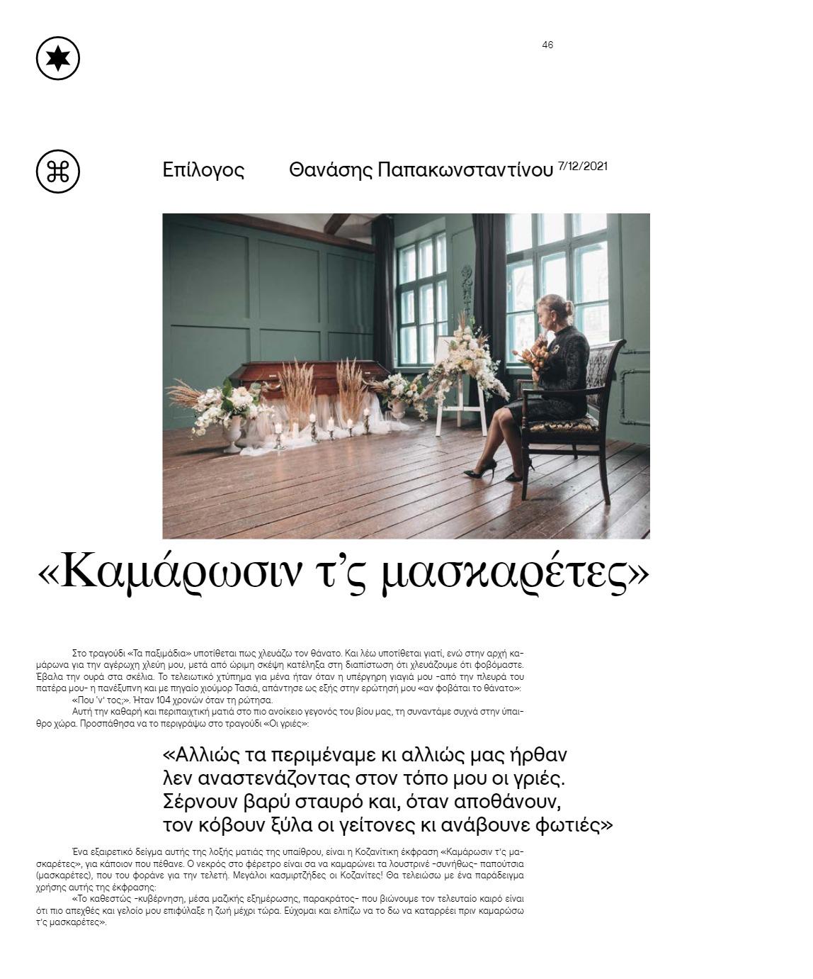 Ένας επίλογος – έκπληξη από τον Θανάση Παπακωνσταντίνου στο τεύχος της parallaxi που αποχαιρετά το 2021 και καλωσορίζει το 2022.