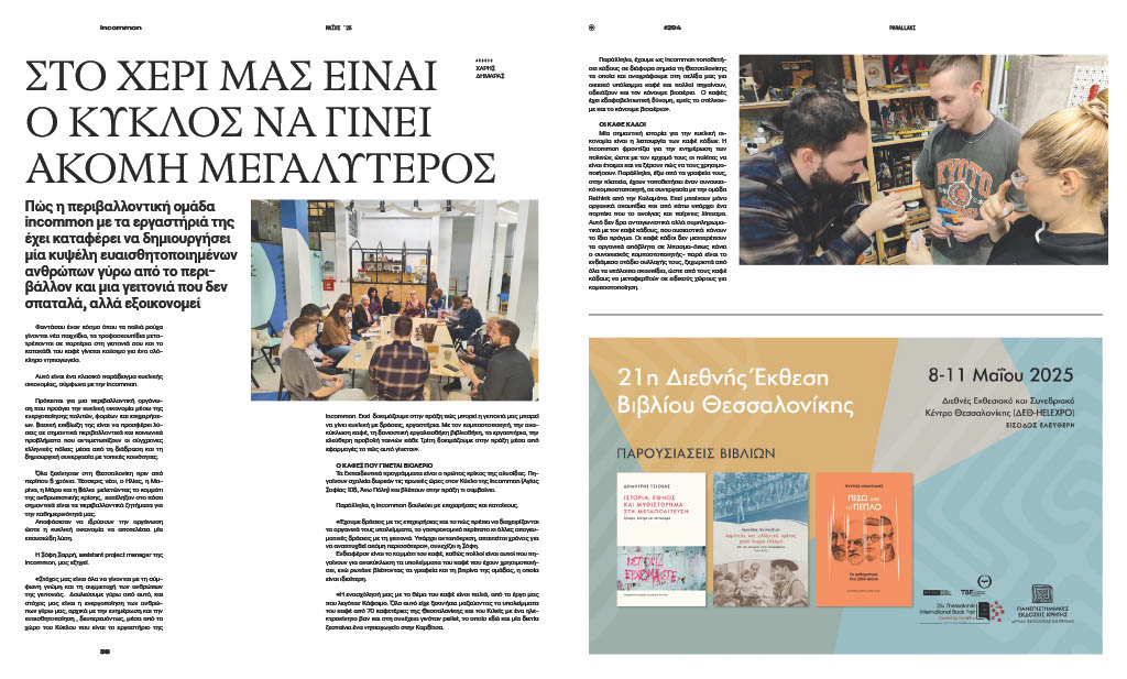 Πώς η περιβαλλοντική ομάδα incommon με τα εργαστήριά της έχει καταφέρει να δημιουργήσει μία κυψέλη ευαισθητοποιημένων ανθρώπων γύρω από το περιβάλλον και μια γειτονιά που δεν σπαταλά, αλλά εξοικονομεί.
