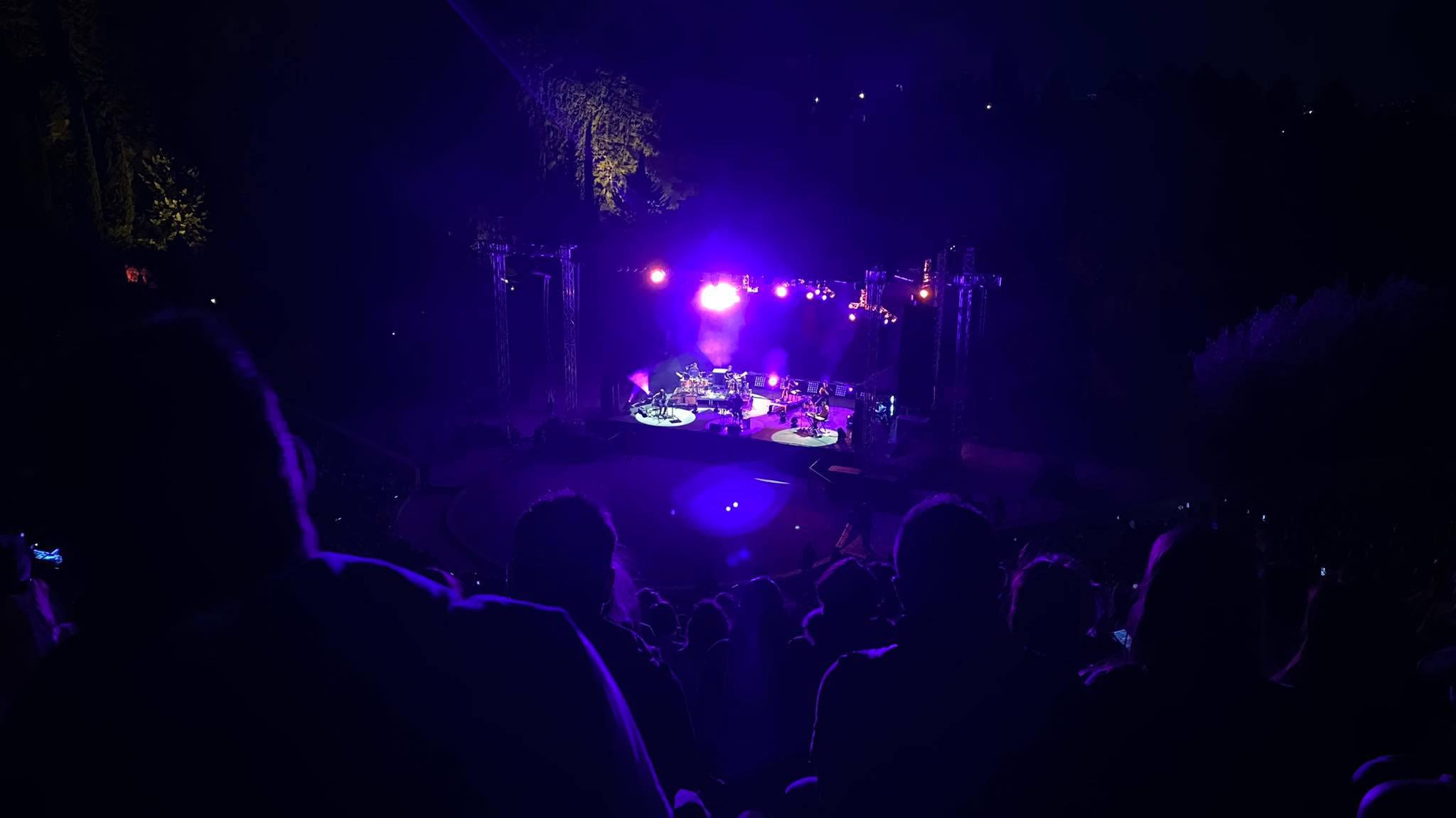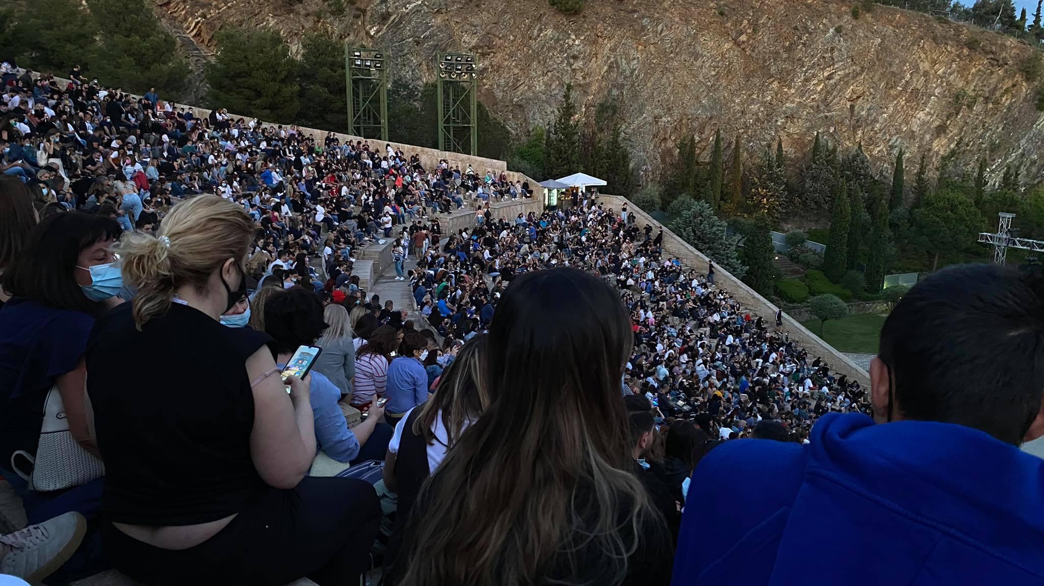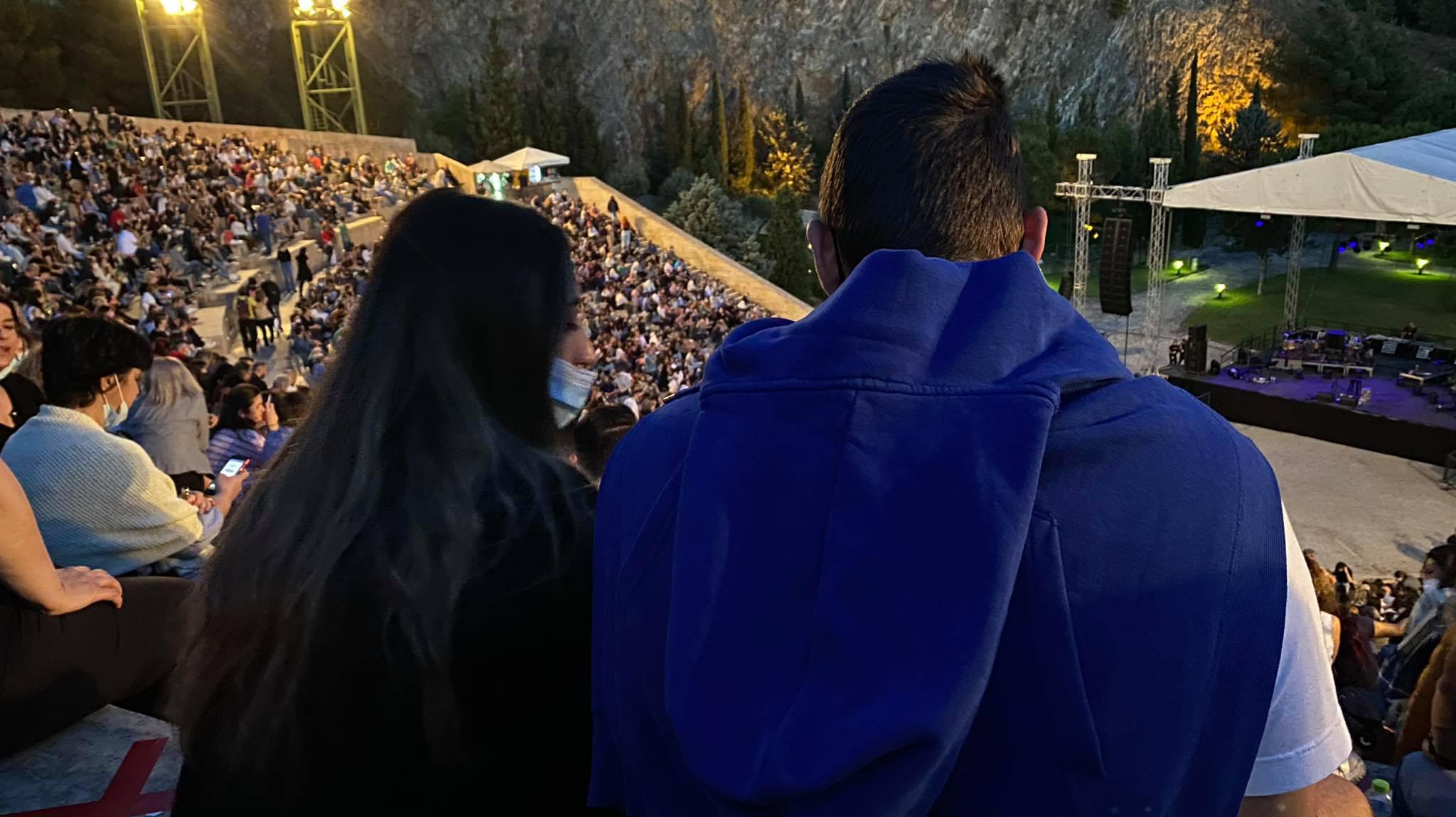 Η συναυλία ακυρώθηκε εχθές λόγω της βροχής. Σήμερα όμως είναι η μεγάλη μέρα. Περπατήσαμε από το κέντρο και φτάσαμε στο Θέατρο Γης, στις 20:15, ήδη ήταν γεμάτο, όσο επιτρέπουν τα πρωτόκολλα, οι άνθρωποι της πόλης γέμισαν τις κερκίδες του και εμείς γίναμε κομμάτι αυτών που περιμένουν να φωνάξουν «τα Μαλαματένια λόγια».