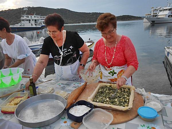 Οι ακούραστες γυναίκες του χωριού δεν δίστασαν να αποκαλύψουν τα μυστικά μιας κουζίνας με συνταγές που έφεραν οι γιαγιάδες τους, πρόσφυγες από τον Μαρμαρά της Μικράς Ασίας αλλά και άλλες που επινόησαν φτάνοντας εδώ και στήνοντας απ΄το μηδέν καινούργιες ζωές. Δεν υπάρχει τίποτα που να παράγει ο τόπος ή να βγαίνει από τη θάλασσα που να μην προσφέρεται στο οικογενειακό τραπέζι. Κι όταν οι άνδρες γυρνούν στυα σπίτια με τη σοδειά της θάλασσας εκείνες είναι που πρέπει να επινοήσουν χίλιους τρόπους για να διαφοροποιήσουν τις συνταγές τους. Για να μη γίνει το καθημερινό μενού βαρετό. Δοκιμάσαμε απίστευτους κεφτέδες με ανεμώνες της θάλασσας, τις κολλιτσίδες που βλέπουμε στα βράχια και δεν μας είχε περάσει ποτέ απ΄το μυαλό ότι μπορούν αποτελέσουν λιχουδιά που θα ζήλευε η παγκόσμια γκουρμέ μαγειρική, ψαροκεφτέδες, χταπόδι με χόρτα, γεμιστό καλαμάρι και πίτες με αρμυρίκια, κρίταμα ή άγρια χόρτα σε διάφορες παραλλαγές.