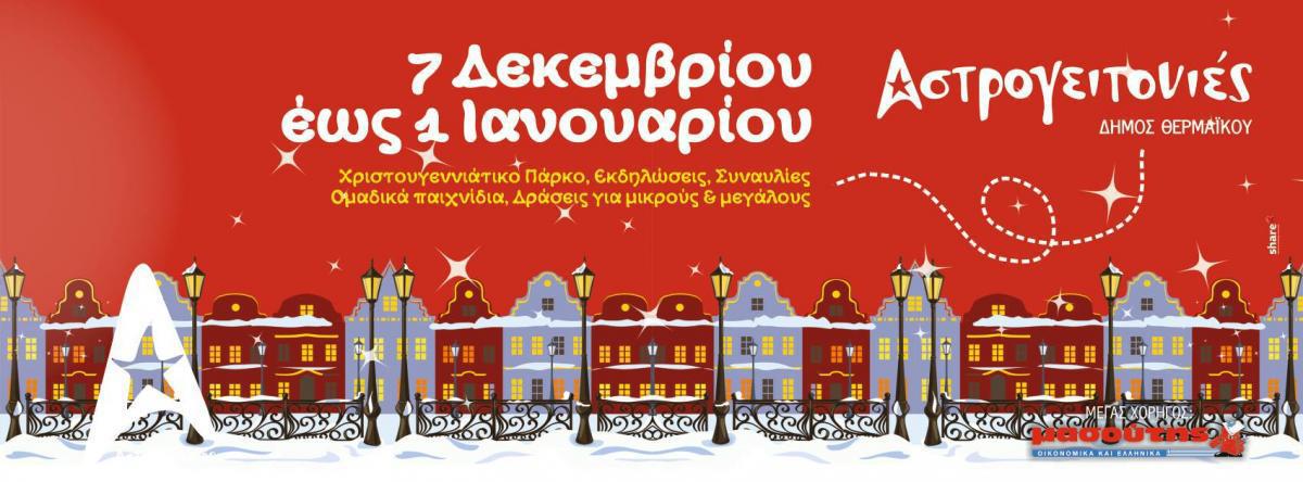 Όχι ένα ούτε δυο αλλά τρία χριστουγεννιάτικα χωριά στήνει ο Δήμος Θερμαϊκού όπως αρμόζει στον μεγαλύτερο Δήμο της πόλης. Οι «Αστρογειτονιές» στήνονται σε Περαία, Μηχανιώνα και Επανομή. Τα χωριά αποτελούνται από από όμορφα, γραφικά, ξύλινα σπιτάκια, με δράσεις για παιδιά που περιλαμβάνουν ξυλογλυπιτκή, χαρτοκοπτική, ζαχαροπλαστική. Στα χωριά θα υπάρχουν καρουζέλ, ενώ στον περιβάλλοντα χώρο τους προγραμματίζονται αθλητικές και καλλιτεχνικές εκδηλώσεις.