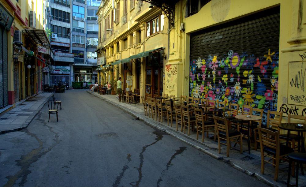 Η γειτονιά μου είναι ακριβώς κάτω από τη Βαλαωρίτου και τα στενά της. Ζω σε ένα ρετιρέ του 8ου ορόφου μιας οικοδομής που αποτελείται από δικηγορικά γραφεία, οπότε καθημερινά έχουμε τρελή κίνηση και τα βράδια-σαββατοκύριακα είμαστε εντελώς μόνοι. Όταν φυσάει, νομίζω πως ζω σε αετοφωλιά και ο αέρας θα μας πάρει τη σκεπή, ενώ τα καλοκαίρια, τις μέρες του καύσωνα επιβιώνουμε με το κλιματιστικό αναμμένο όλο το εικοσιτετράωρο. Τα βράδια, μετά τις 12, μας νανουρίζει η εκκωφαντική μουσική από τα μπαράκια, που με το ξημέρωμα δίνει τη θέση της σε βιαστικούς δικηγόρους, νοικοκυρές που έρχονται να ψωνίσουν από τα γύρω εμπορικά και τη συνεχή κίνηση των αυτοκινήτων που διασχίζουν τη Βασιλέως Ηρακλείου και -σχεδόν κάθε μέρα- κορνάρουν, βρίζονται και τσακώνονται στη μέση του δρόμου σταματώντας την κυκλοφορία.
