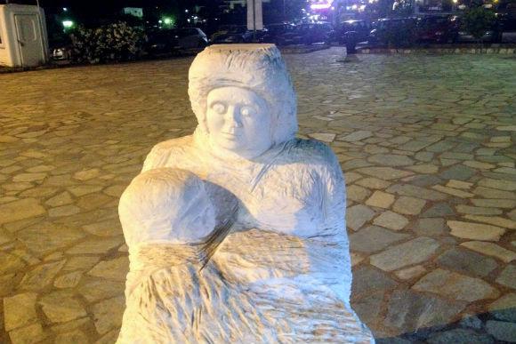 Φέτος όμως ήρθε η ώρα της τέχνης. Στη μικρή τσιμεντένια πλατεία του λιμανιού κάποιος δημόσιος φορέας πήγε και κότσαρε ένα άγαλμα απερίγραπτης αισθητικής, μια μεταμοντέρνα φρίκη λευκού χρώματος, στη μέση του πουθενά και χωρίς καμία λογική εναρμόνησης με το χώρο. Φυσικά χωρίς σηματοδότηση ώστε να γνωρίζουμε το όνομα του ευφάνταστου καλλιτέχνη που φιλοτέχνησε τον απερίγραπτο όγκο της άγνωστης μάνας με το μωρό αγκαλιά που δεσπόζει πια στον περίπατο των κατοίκων και των επισκεπτών.