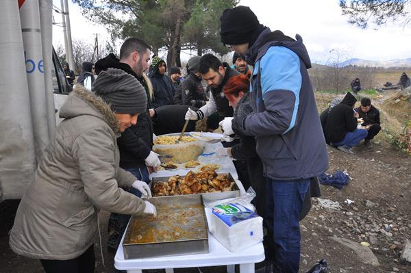 Οι κάτοικοι της περιοχής συνεχώς και με δική τους πρωτοβουλία οργανώνουν συσσίτια για τους πρόσφυγες που περιμένουν εγκαταλειμένοι από όλους να περάσουν τα σύνορα προς την Βόρεια Ευρώπη. Μια αξιέπαινη προσπάθεια που κινείται μόνο από ανθρωπιά και αλληλεγγύη προς τον συνάνθρωπο.