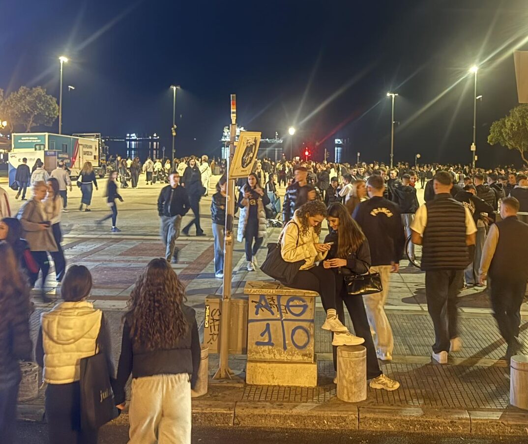 Σάββατο βράδυ, πλατεία Αριστοτέλους. Εκατοντάδες έφηβοι κατακλύζουν την πλατεία. Τους έβλεπα να καταφθάνουν με τα πόδια από ψηλά από τον πεζόδρομο για να συναντηθούν σε μεγάλες παρέες σε μια χαρούμενη τελετουργία γεμίζοντας με ζωή την άδεια μεγάλη πλατεία που ονειρεύτηκε ο Εμπράρ ως τόπο συνάντησης. Εδώ το κλίμα είναι αλλιώτικο, πρωτοστατούν οι συσκευές αλλά δεν λείπουν τα αστεία, τα πειράγματα, το μαζί. Το παρήγορο είναι πως αυτά τα παιδιά άφησαν τα μοναχικά τους δωμάτια και τον εικονικό κόσμο και συναντήθηκαν σε πραγματική συνθήκη. Και θα το επαναλάβουν και τα επόμενα Σάββατα. Οικειοποιούμενοι το δημόσιο χώρο της πόλης.