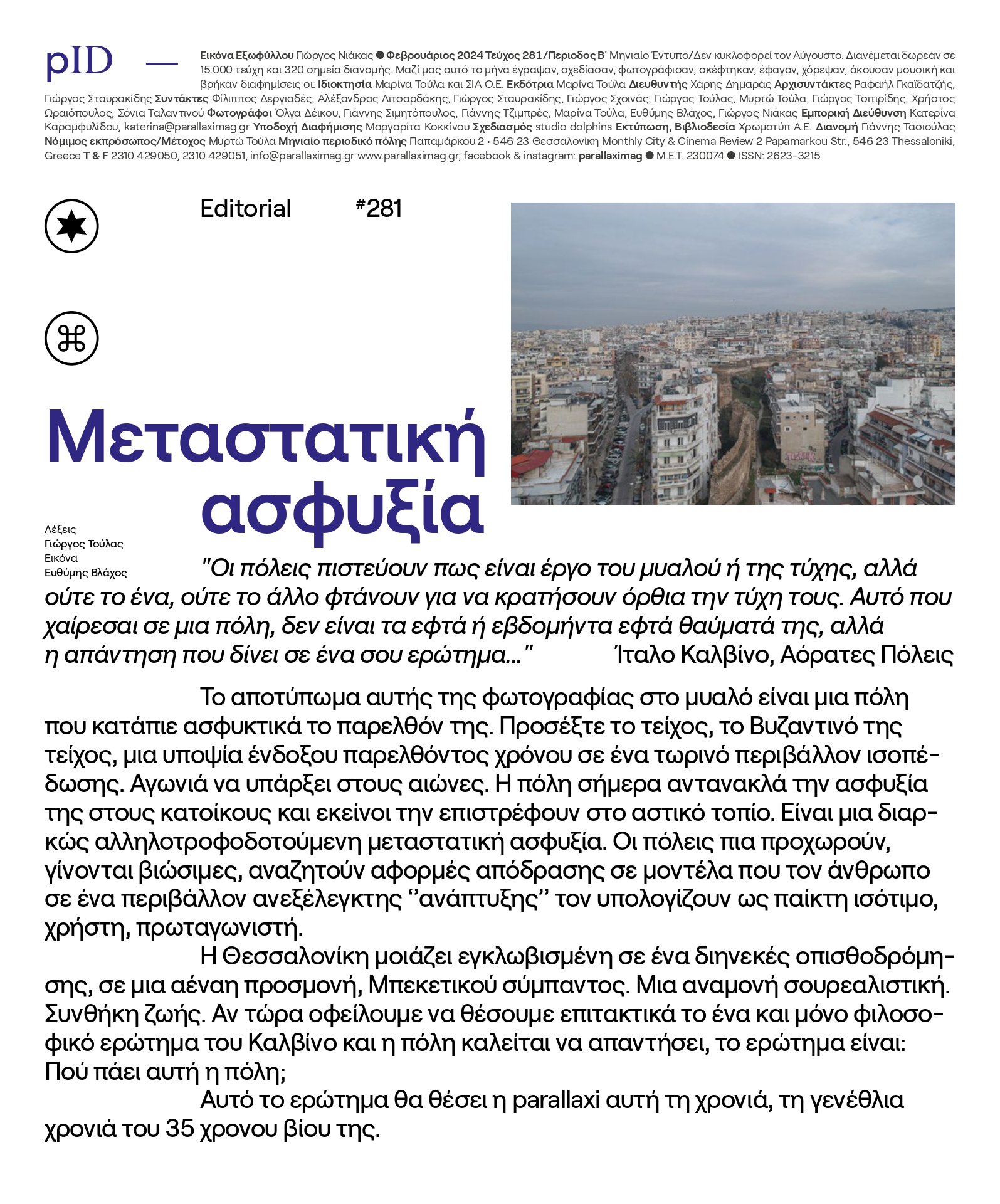 Η parallaxi μπαίνει στη γενέθλια χρονιά του 35χρονου βίου της, με ένα τεύχος που ανοίγει μια δημόσια συζήτηση για το παρακάτω της Θεσσαλονίκης.
