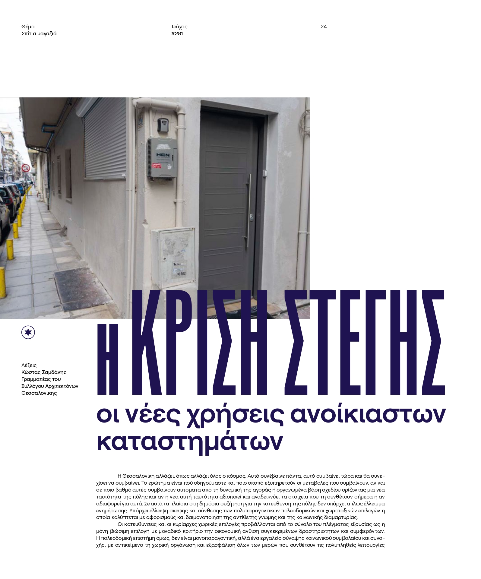 Ο Κώστας Σαμδάνης καταγράφει τις σκέψεις του για τις νέες χρήσεις των ανοίκιαστων καταστημάτων στην πόλη.