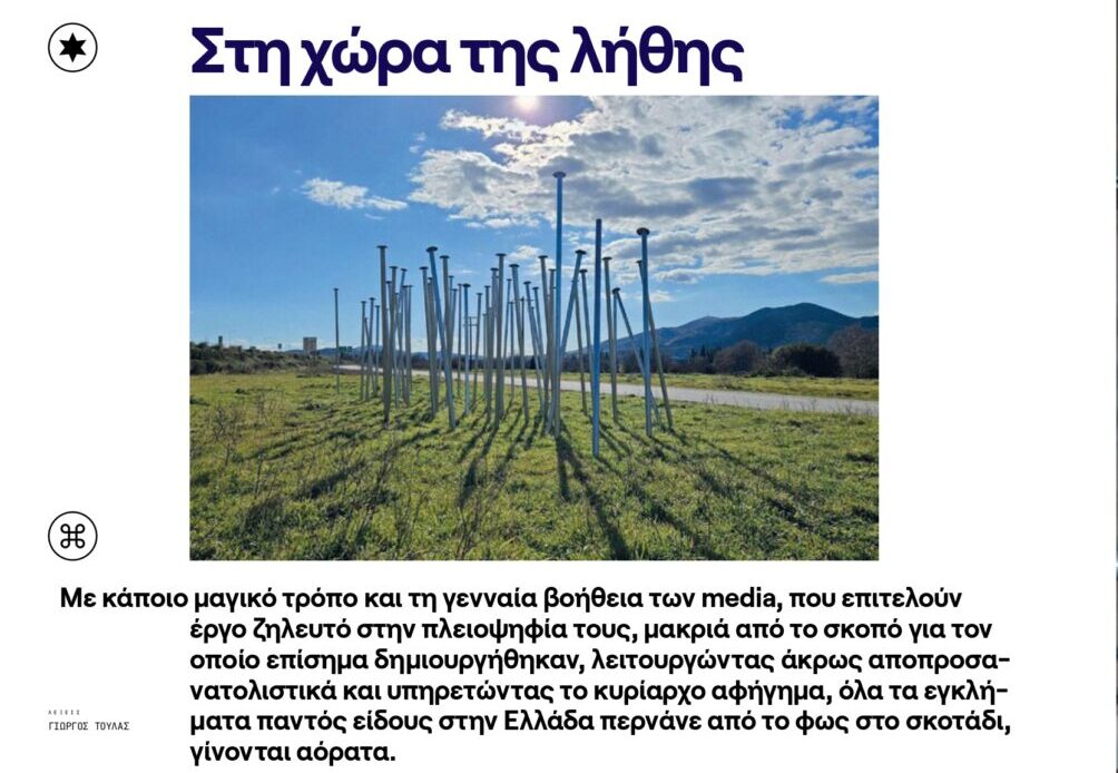 Ο Γιώργος Τούλας γράφει για τα παντός είδους εγκλήματα στην Ελλάδα που περνάνε από το φως στο σκοτάδι και γίνονται αόρατα.