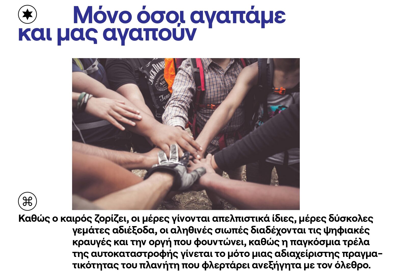 Η αγάπη ως σωσίβια λέμβος σε έναν φουρτουνιασμένο κόσμο. Ο Γιώργος Τούλας δίνει το στίγμα των ημερών μέσα από το editorial του 300ου τεύχους της parallaxi.
