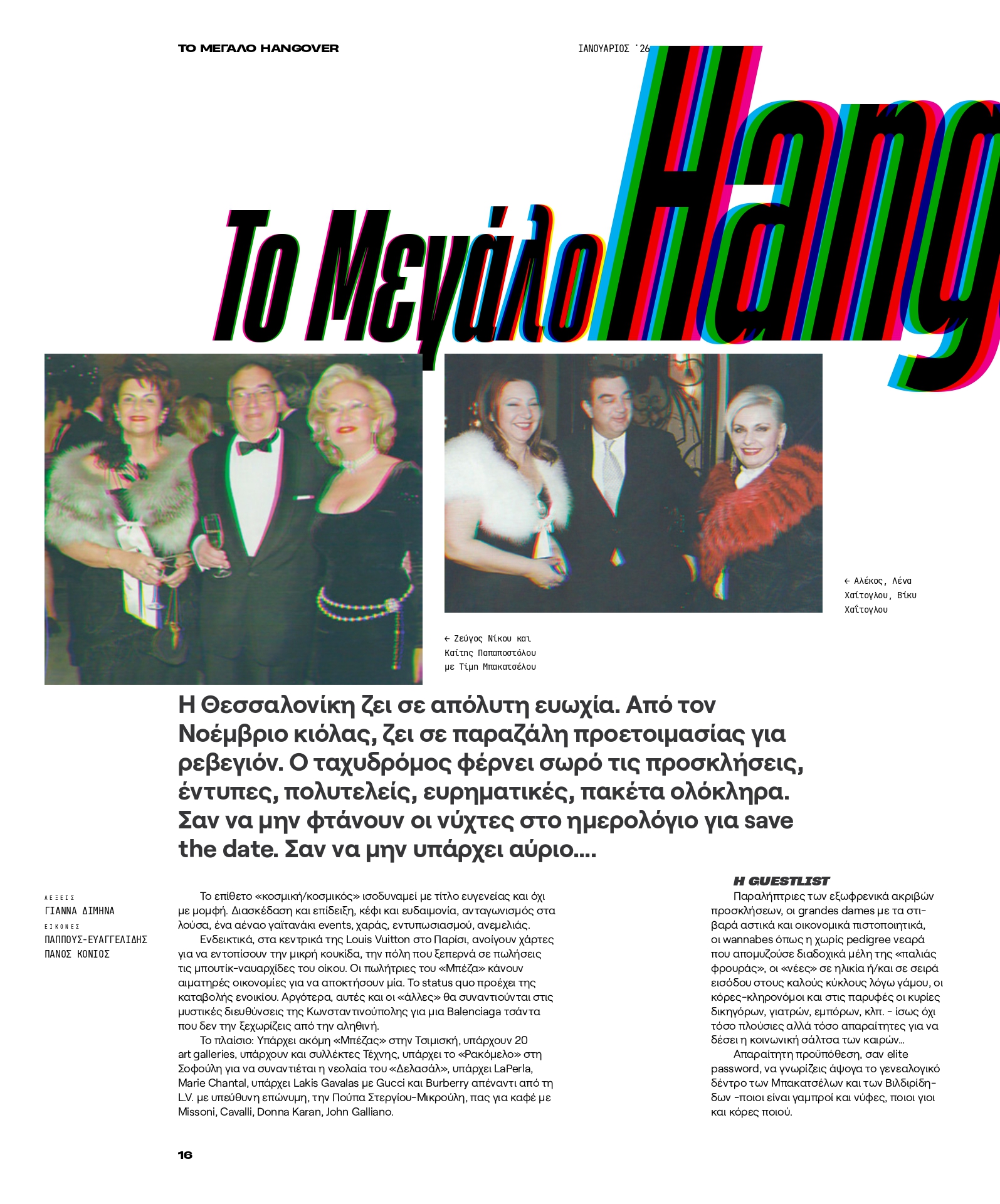 Η Γιάννα Διμηνά μας ταξιδεύει στα ρεβεγιόν που άφησαν εποχή στη Θεσσαλονίκη. Οι παρουσίες, τα παρασκήνια, τα εντυπωσιακά φορέματα γνωστών κυριών της πόλης.