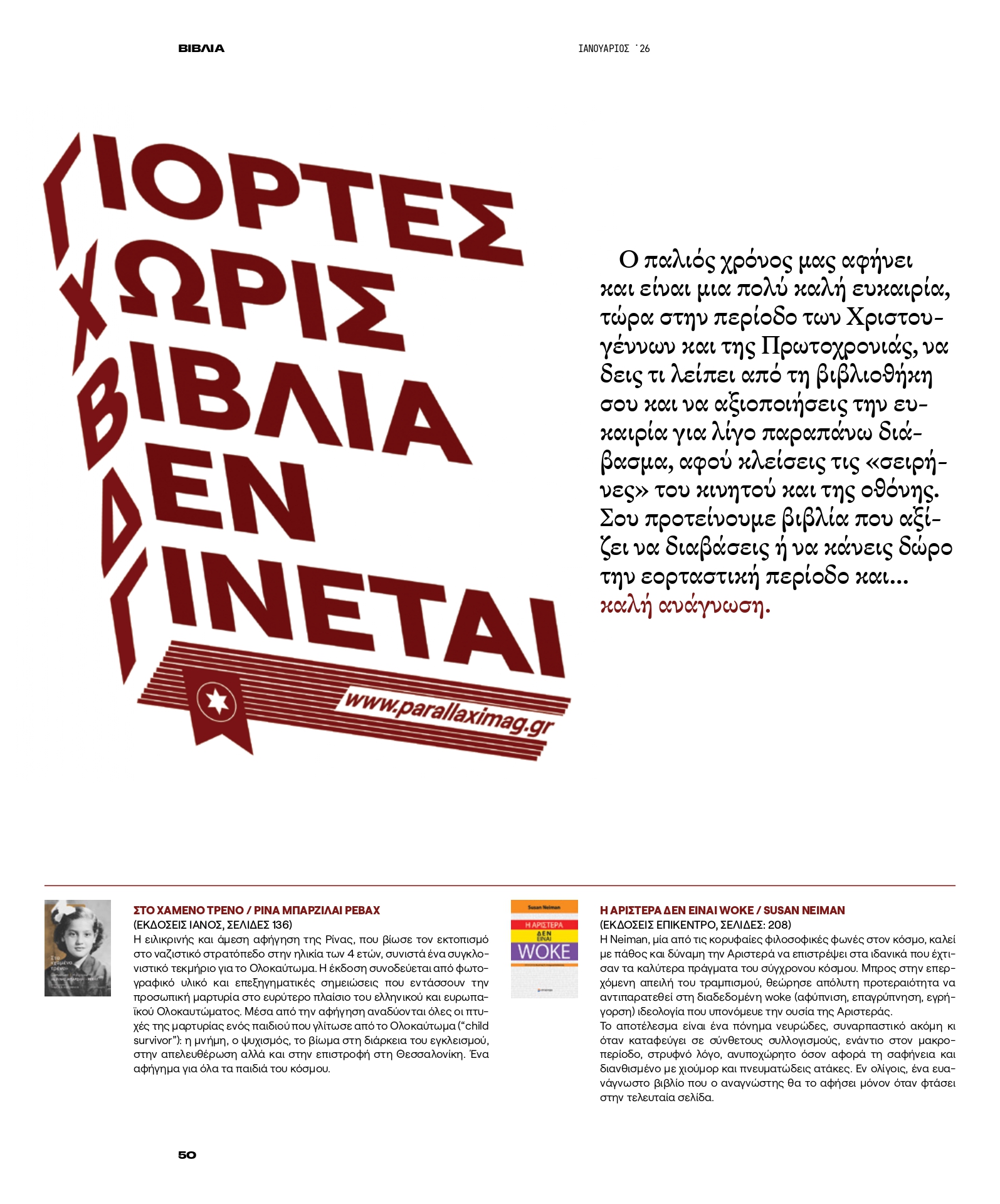 Η parallaxi κυκλοφορεί στην πόλη με ένα εορταστικό τεύχος που αποχαιρετά το 2025 και υποδέχεται το 2026.